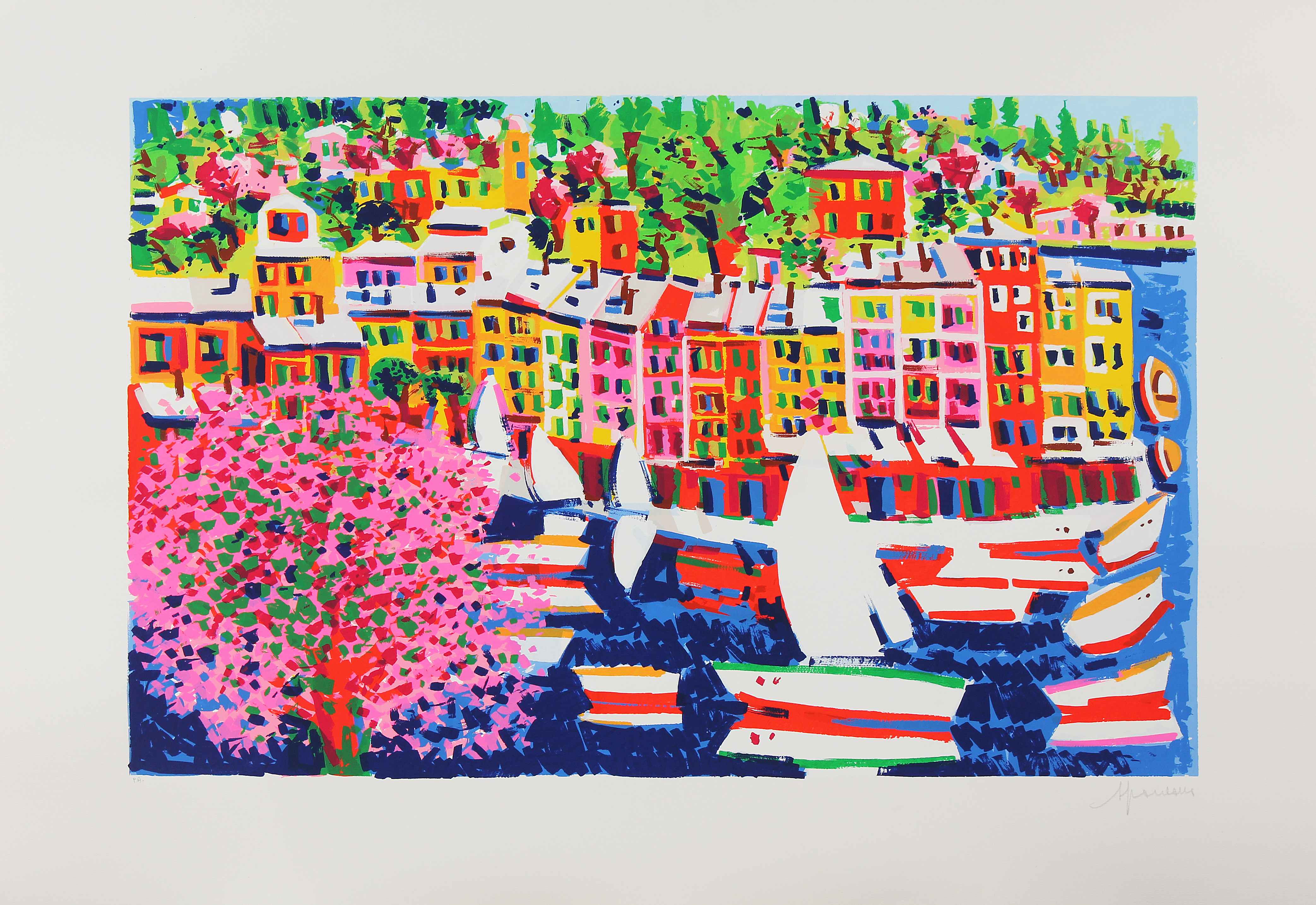 FACCINCANI ATHOS (n. 1951) Portofino. Litografia. Cm 100,00 x 70,00. P.d.a a matita in basso a sinistra e firma a matita in basso a destra.