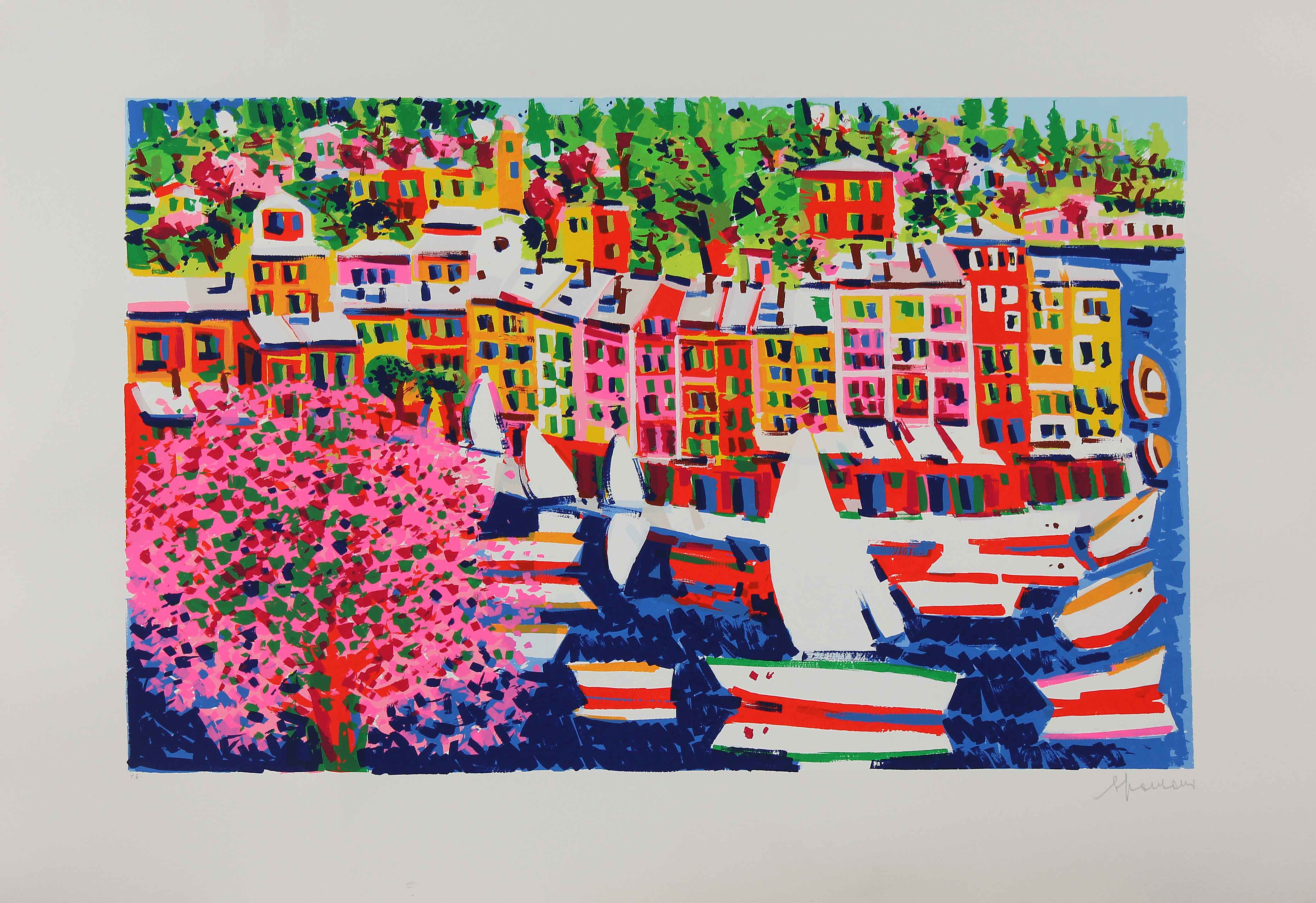 FACCINCANI ATHOS (n. 1951) Portofino. Litografia. Cm 100,00 x 70,00. P.d.a a matita in basso a sinistra e firma a matita in basso a destra.
