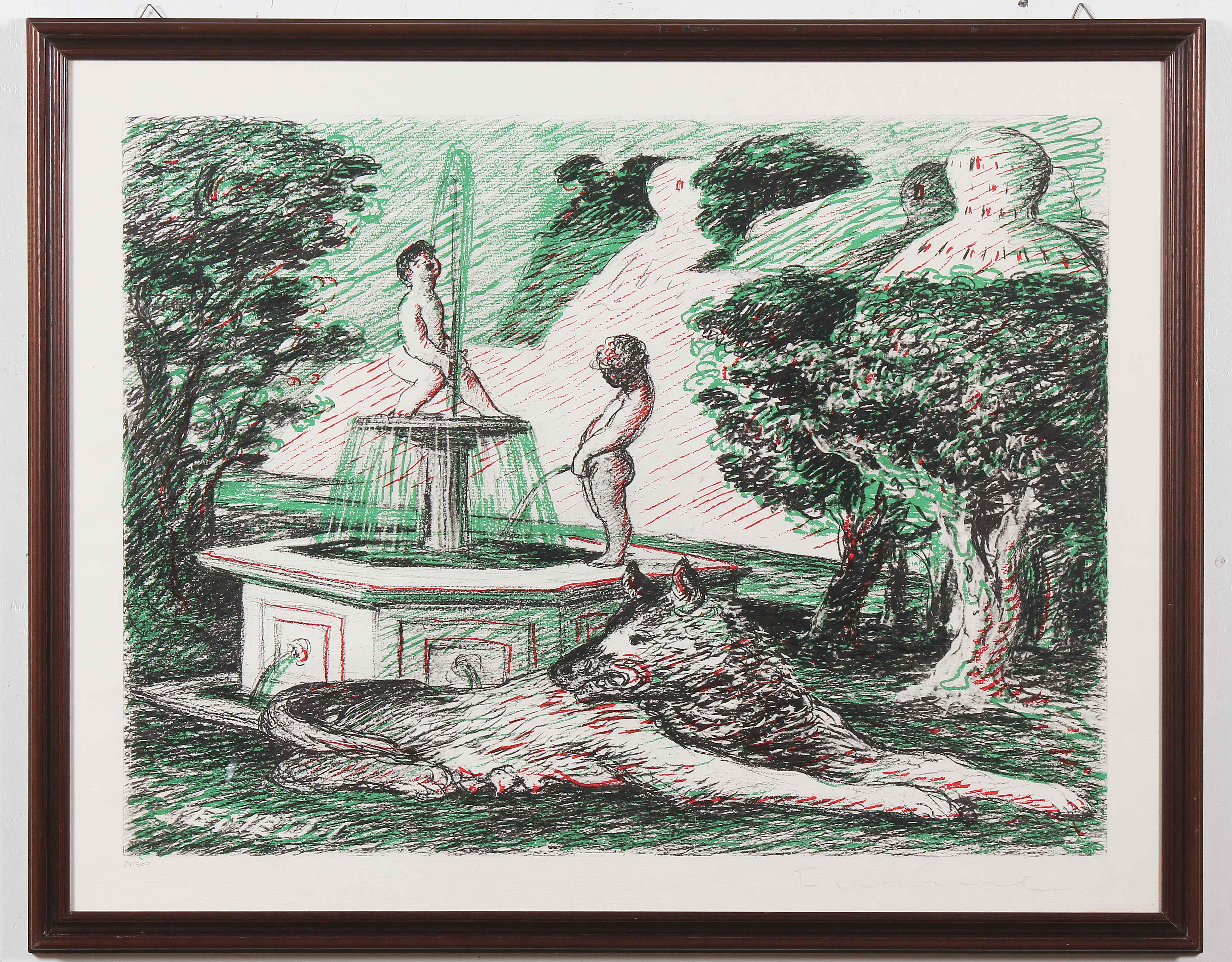 FIUME SALVATORE (1915 - 1997) Gemelli - serie Segni Zodiacali. Litografia. Cm 90,00 x 70,00. 89/300. Tiratura e firma a matita in basso. Cornice presente