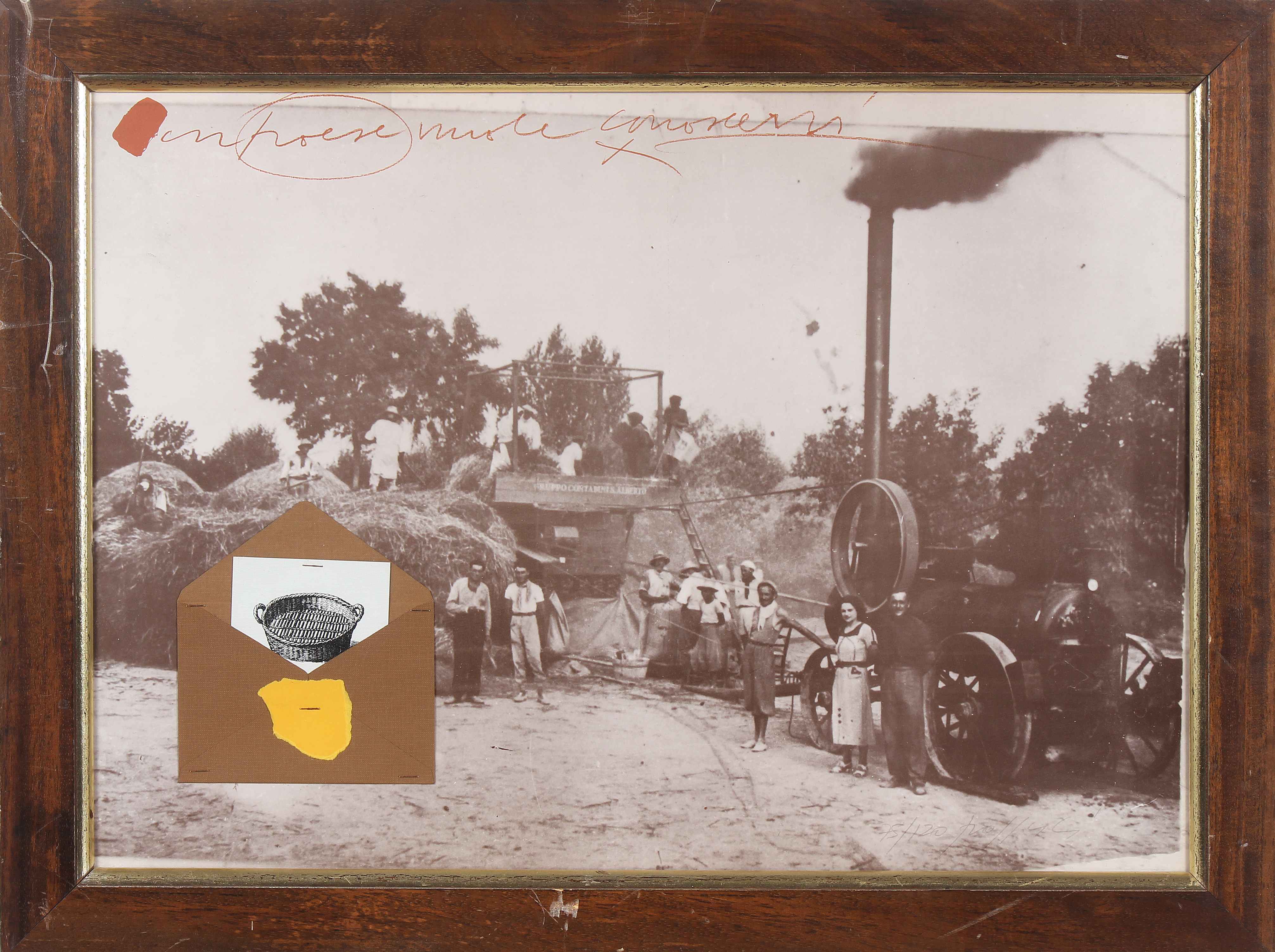 POZZATI CONCETTO (n. 1935) Un paese. Litografia e collage. Cm 70,00 x 50,00. 75/120. Tiratura e firma a matita in basso a destra. Cornice presente