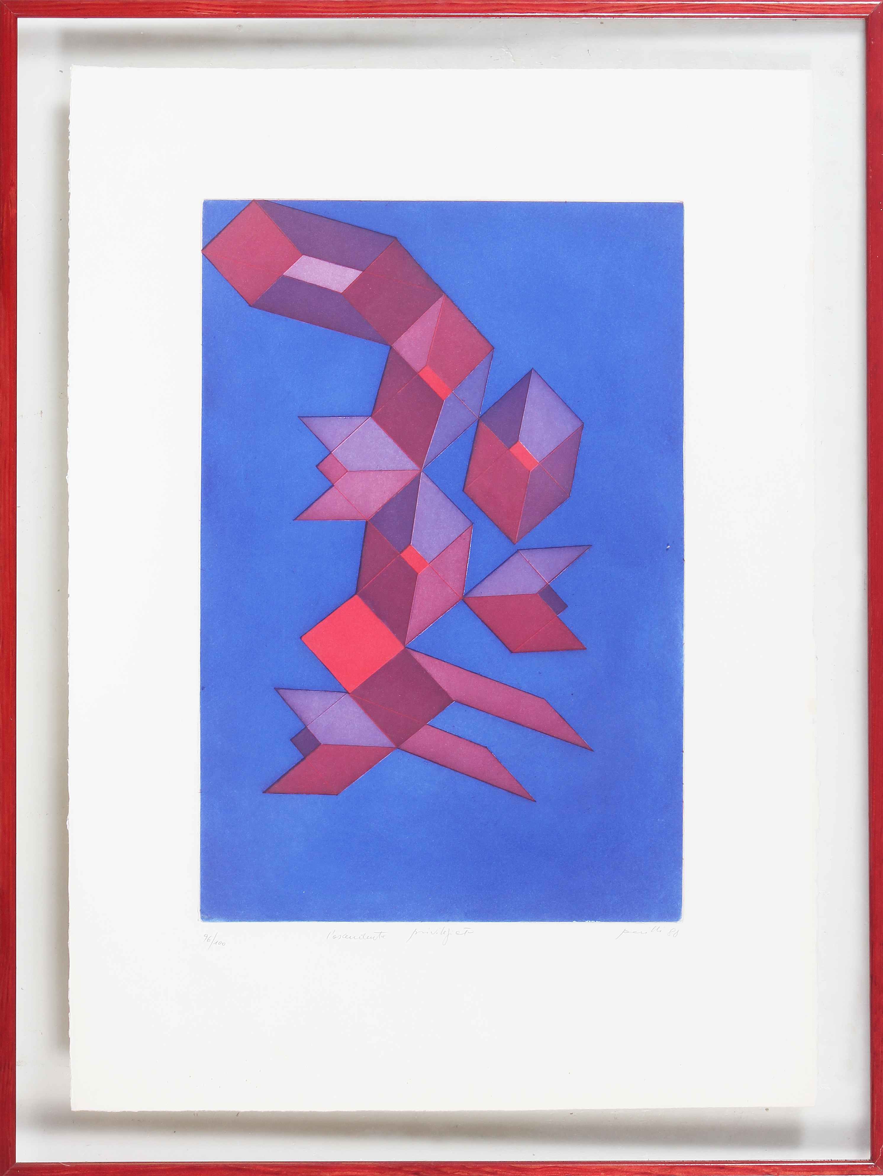 PERILLI ACHILLE (n. 1927) L'ascendente privilegiato. 1988. Acquaforte. Cm 50,00 x 70,00. 96/100. Tiratura, titolo, firma e anno a matita in basso. Timbro a secco Edizioni Linea 70 in basso a destra. Dimensioni lastra: 48x32 cm. Cornice presente