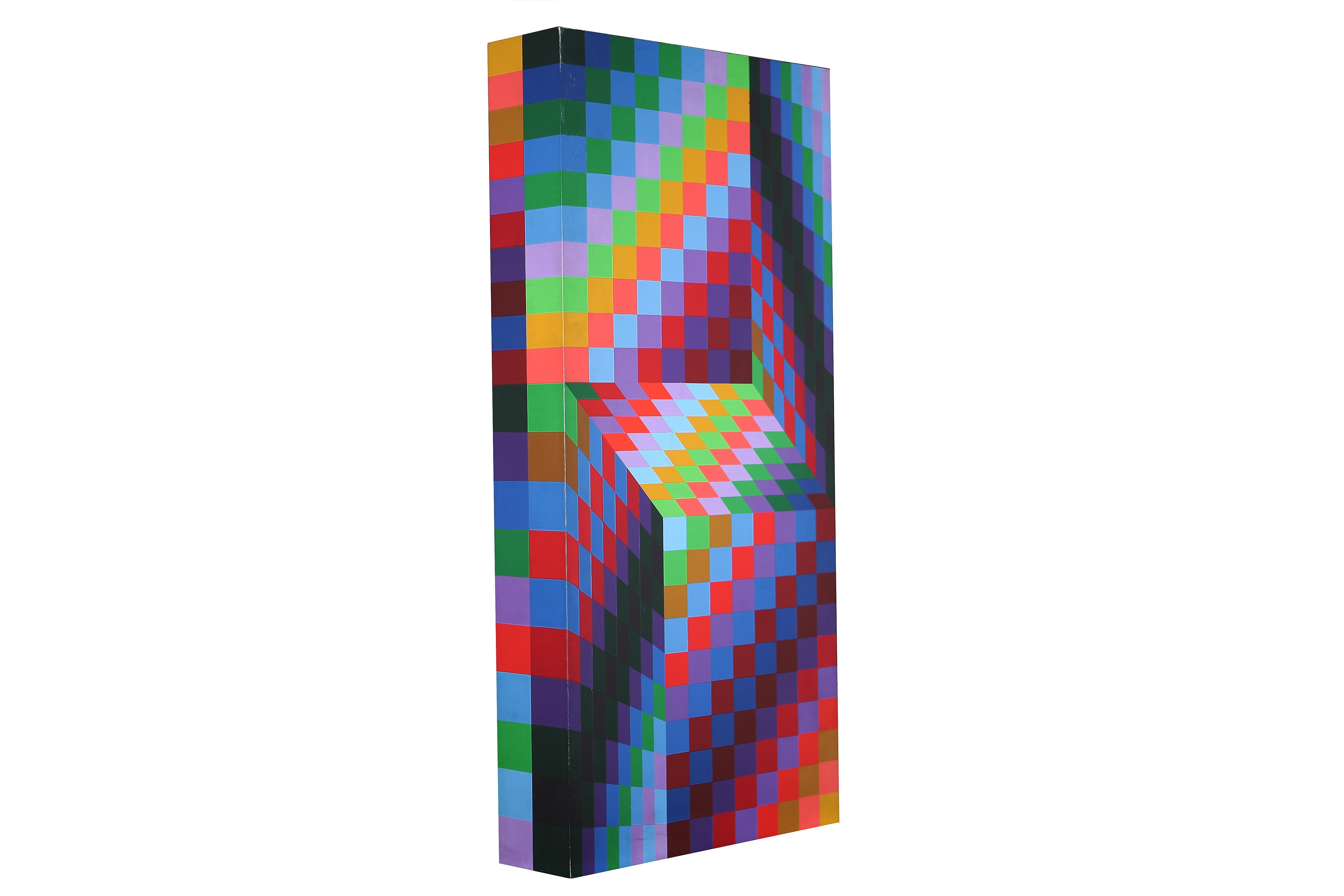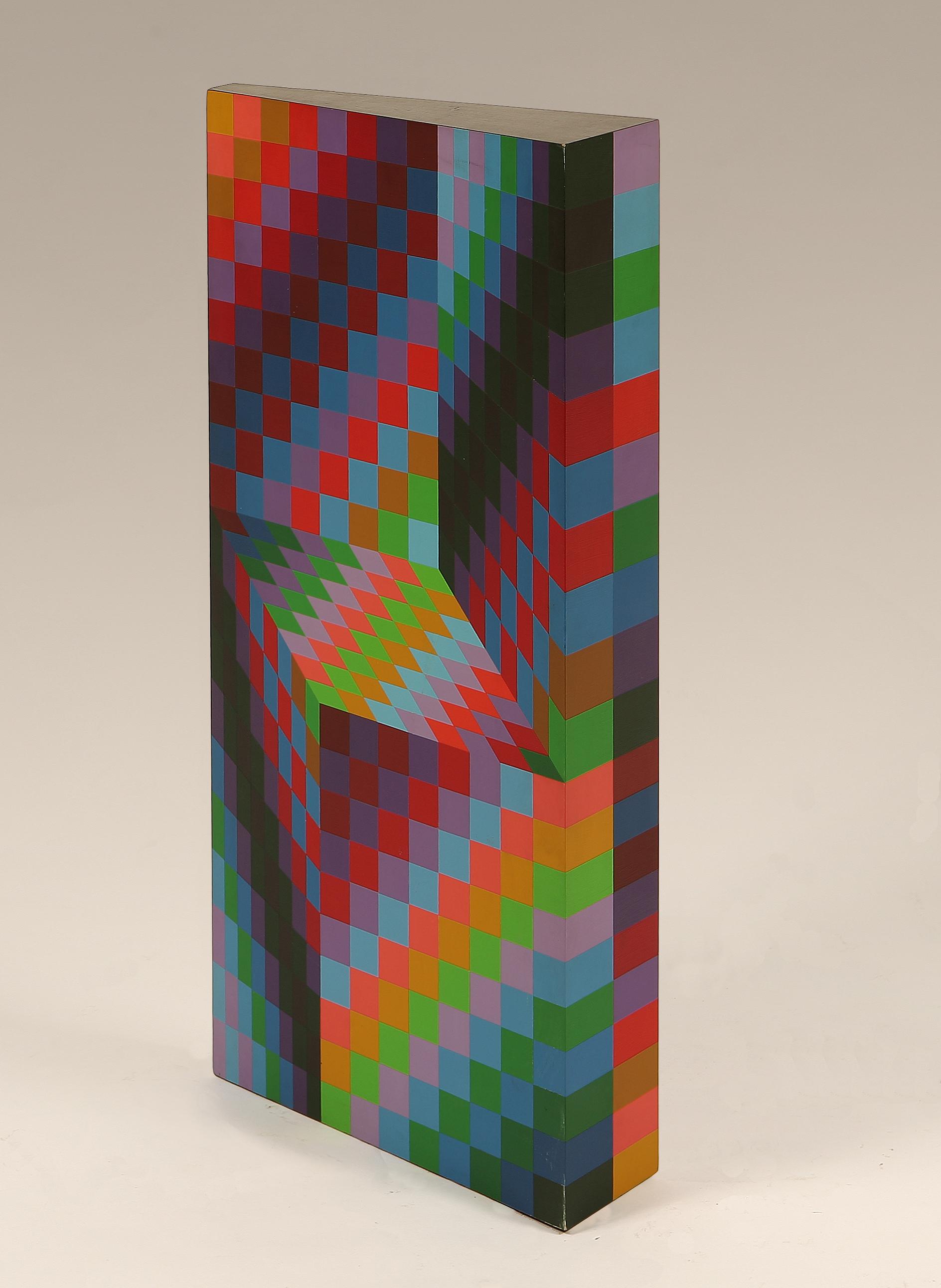 VASARELY VICTOR (1906 - 1997) Tiratura: 175 esemplari. Provenienza: Galerie Pictural, Monaco (FR). Autentica su fotografia ad opera di Pierre Vasarely. Autentica su fotografia a cura di Pierre Vasarely, Union Francaise des Experts, Aix en Provence. Scultura Cm 34,5x70x1 , ANNO: 1988