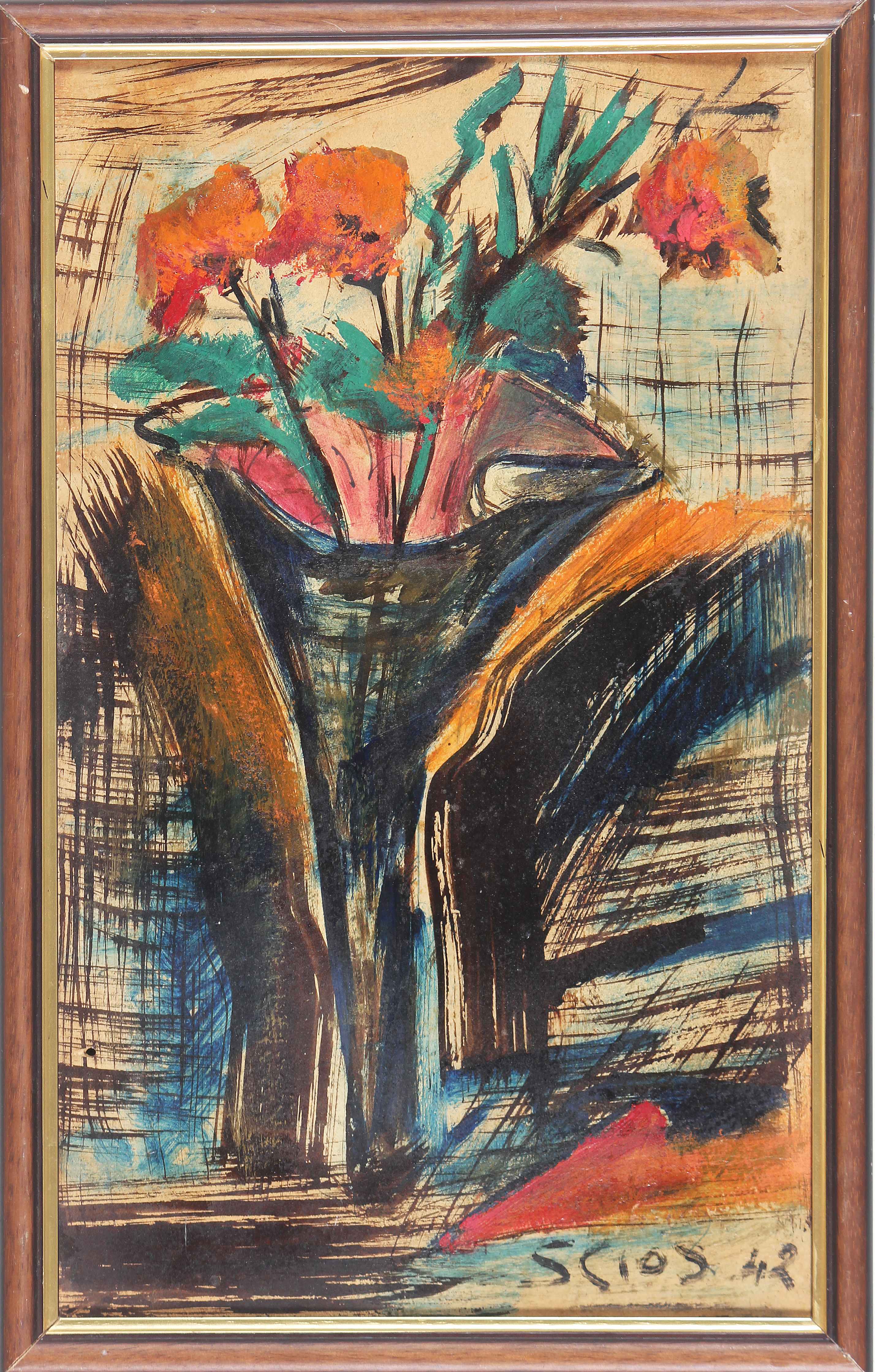 Lotto 387 | ANONIMO Vaso di fiori. 1942. Olio su cartone. Cm 42,50 x 25,50. Firmato e...