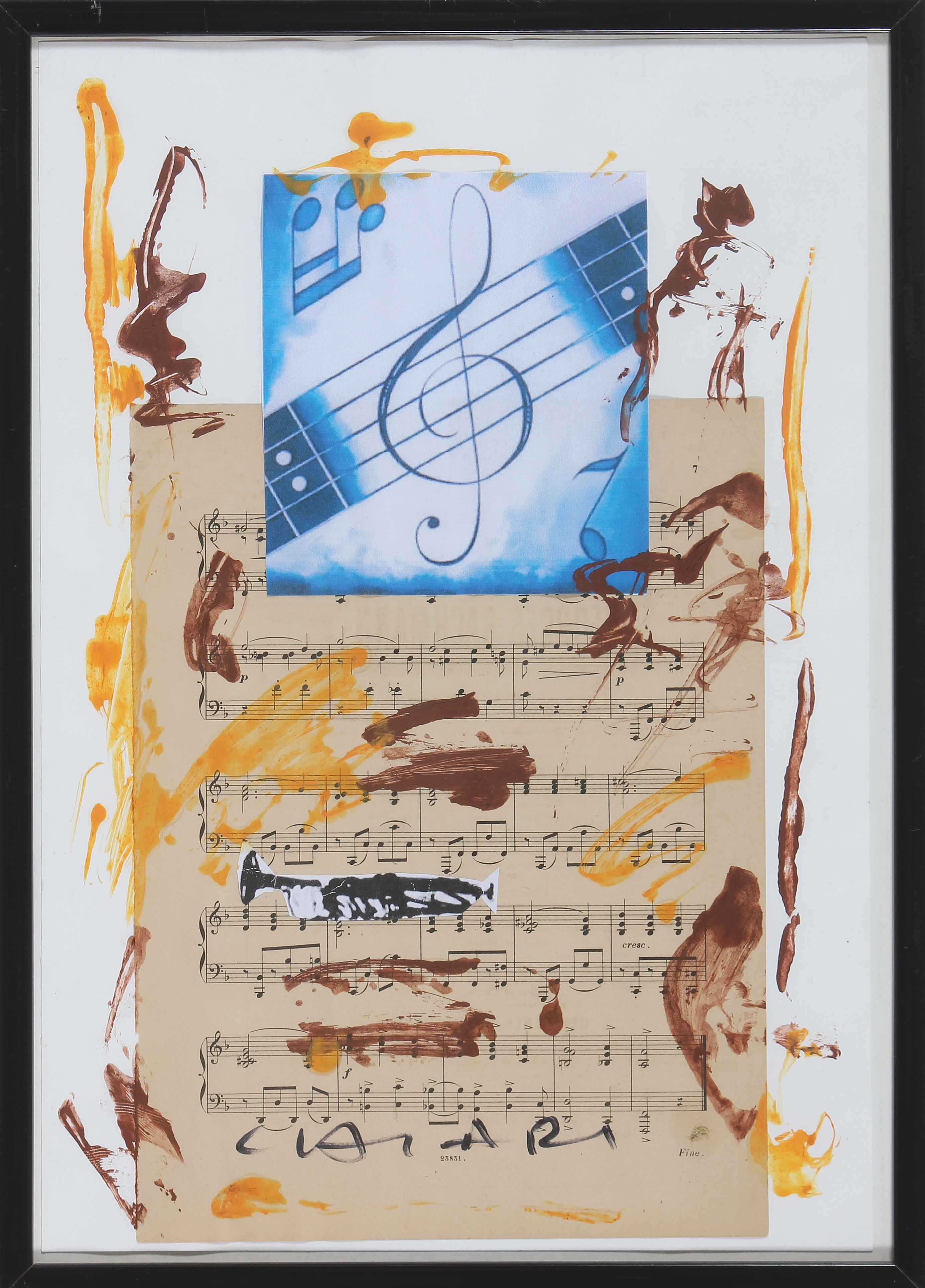 CHIARI GIUSEPPE (1926 - 2007) Spartito. Tecnica mista e collage su cartone. Cm 34,00 x 48,00. Firma in basso. Autentica dell'artista su fotografia.