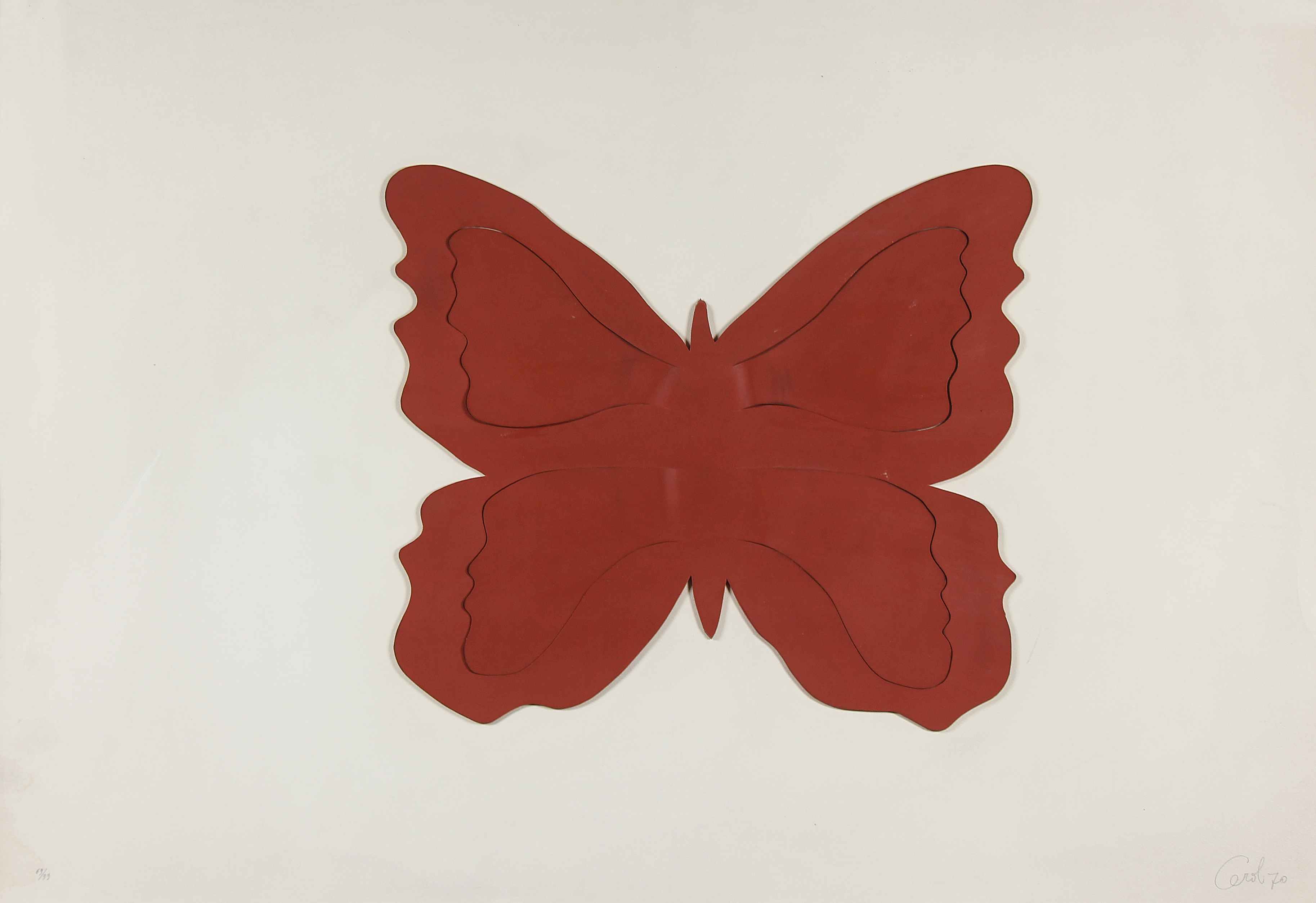 CEROLI MARIO (n. 1938) Farfalla. Gomma su carta. Cm 70,00 x 100,00. 69/99.Tiratura a matita in basso a sinistra e firma a matita in basso a destra.