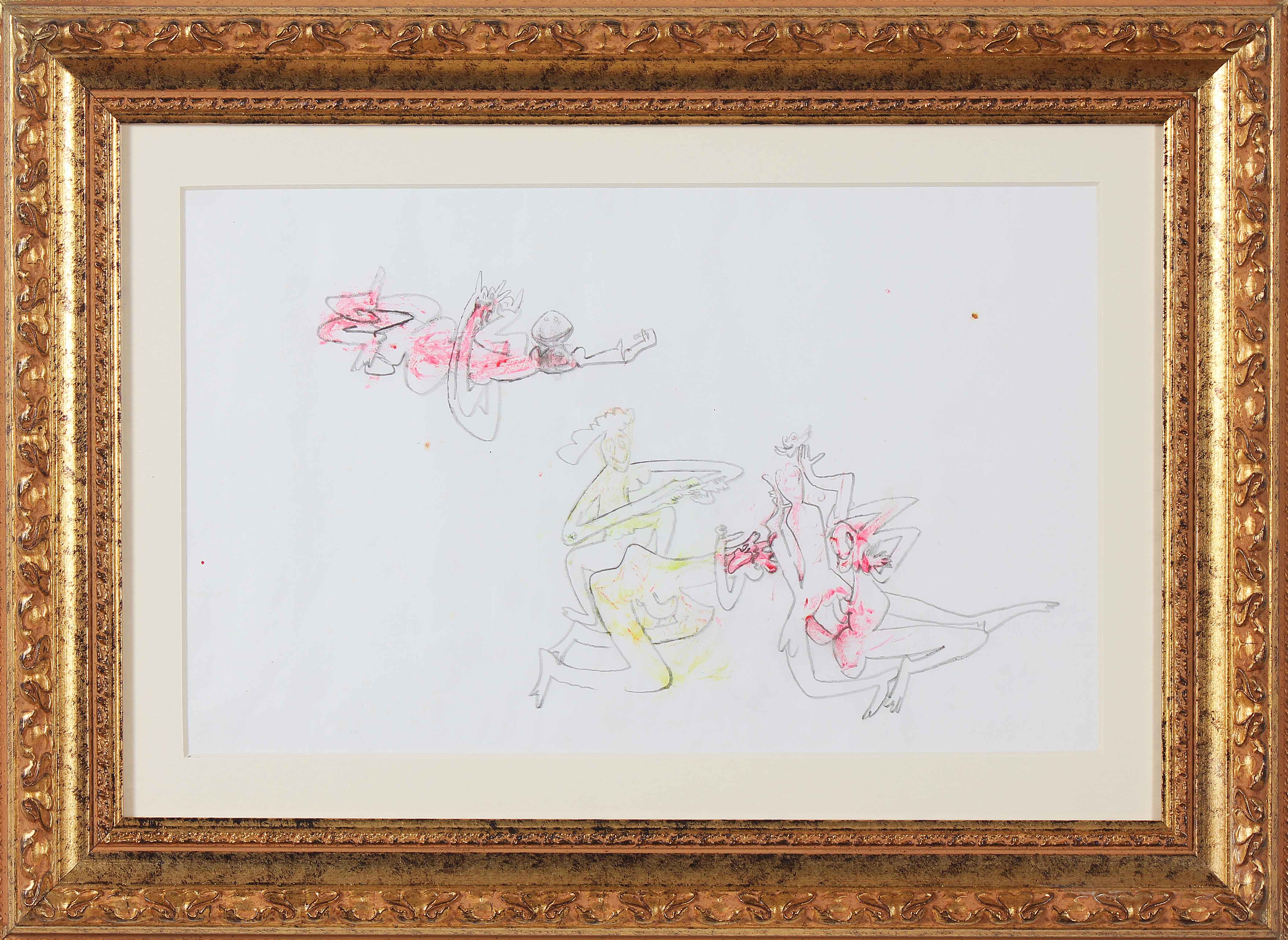 MATTA ROBERTO SEBASTIAN ANTONIO (1911 - 2002) Figure. Tecnica mista su cartoncino. Cm 53,00 x 35,00. Autentica su fotografia a cura di Alessio Statuti esperto e consulente d'arte, Modena. Cornice presente