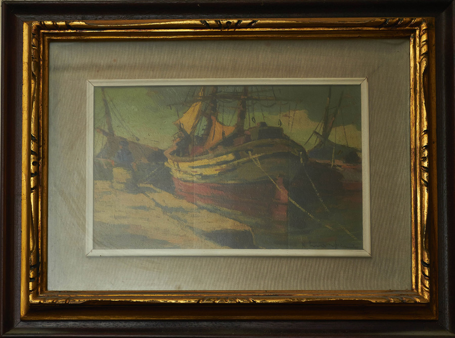R. MARTINI Barconi Olio su cartone cm. 19,5x29,5 Firma in basso a destra