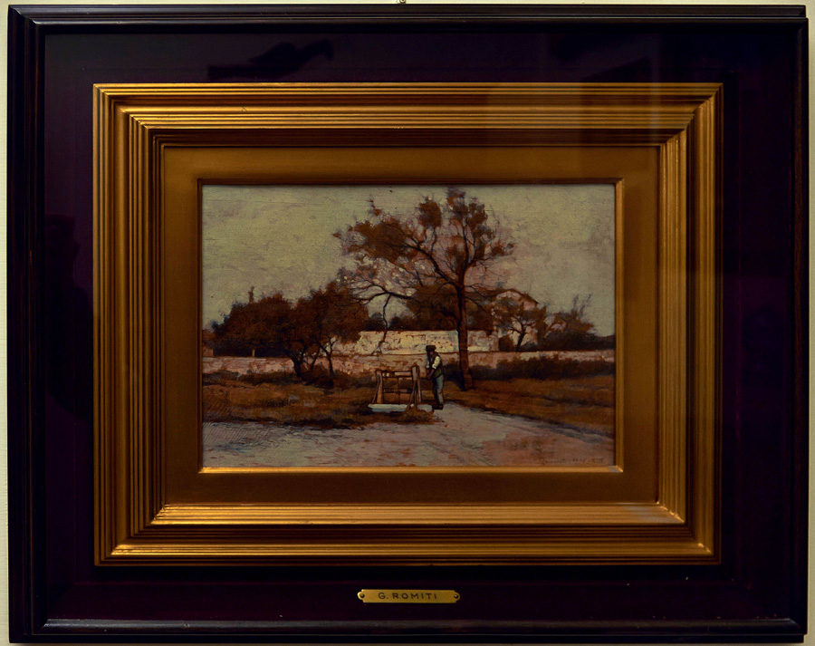 GINO ROMITI In campagna, 1935 Olio su tavola cm. 22,5x29,5 Firma e data in basso a destra Cornice Salvestrini