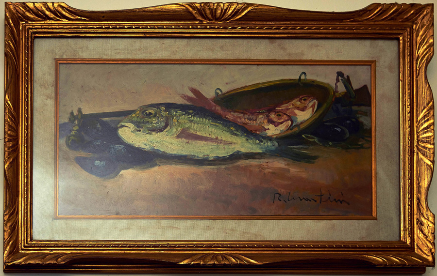 R. MARTINI Natura morta Olio su faesite cm. 30x60 Firma in basso a destra e...