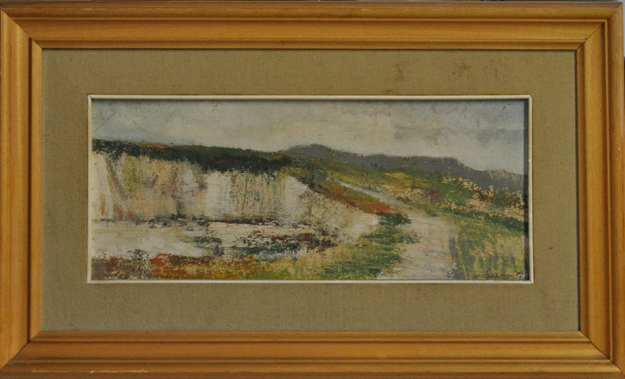 Lotto 67 | IGNOTO Paesaggio Olio su cartone cm. 20,5x47 Firma e data illeggibile in...
