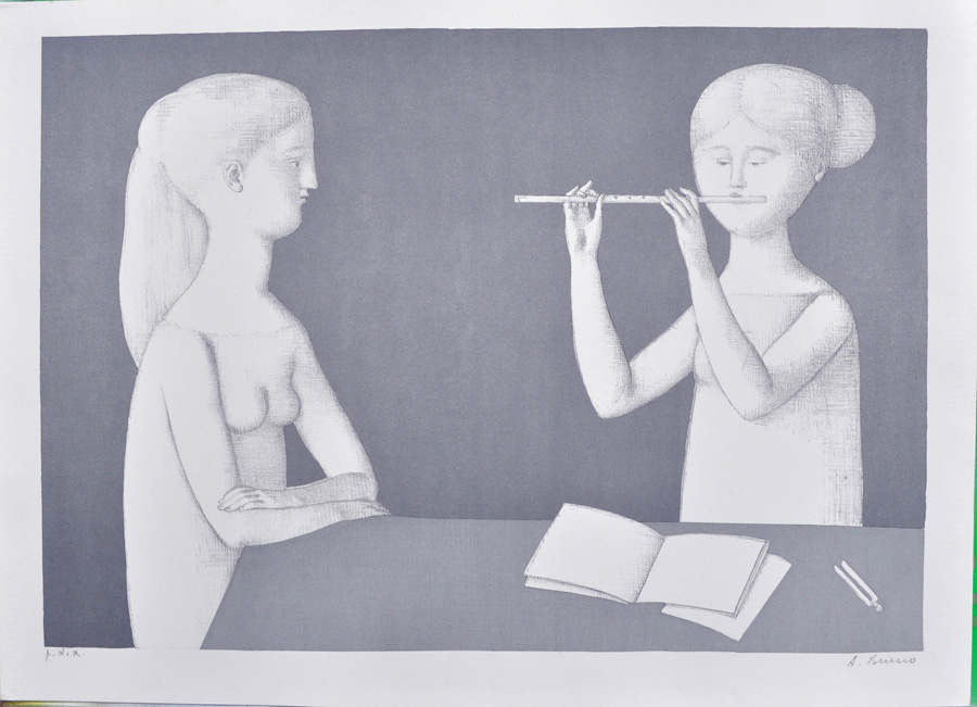 ANTONIO BUENO Lezione di musica Litografia in b/n es. p.d.a cm. 50x70 Firma in basso a destra