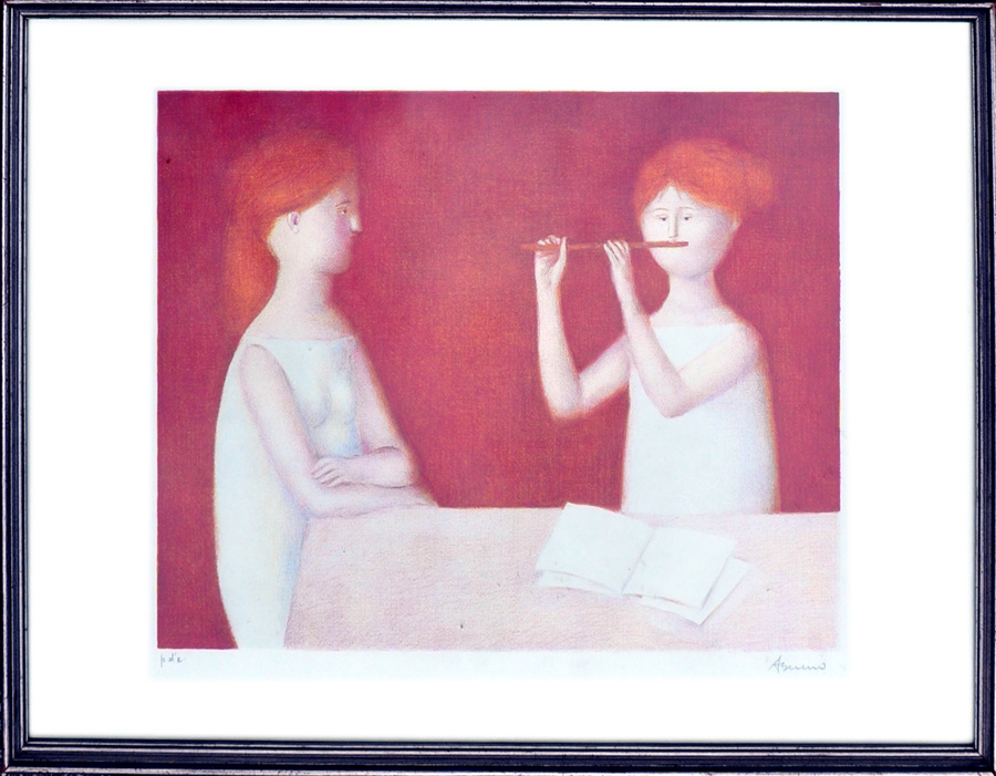 ANTONIO BUENO Lezione di musica Litografia a colori cm. 50x70 es. P.d.A. Firma in basso a destra