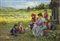 MARISALDI FALCO ELENA (Santo Stefano Belbo (CN) 1901 - 1986 Torino) - "Famiglia in campagna", 35x49,5 olio su cartone. Opera firmata in basso a sinistra