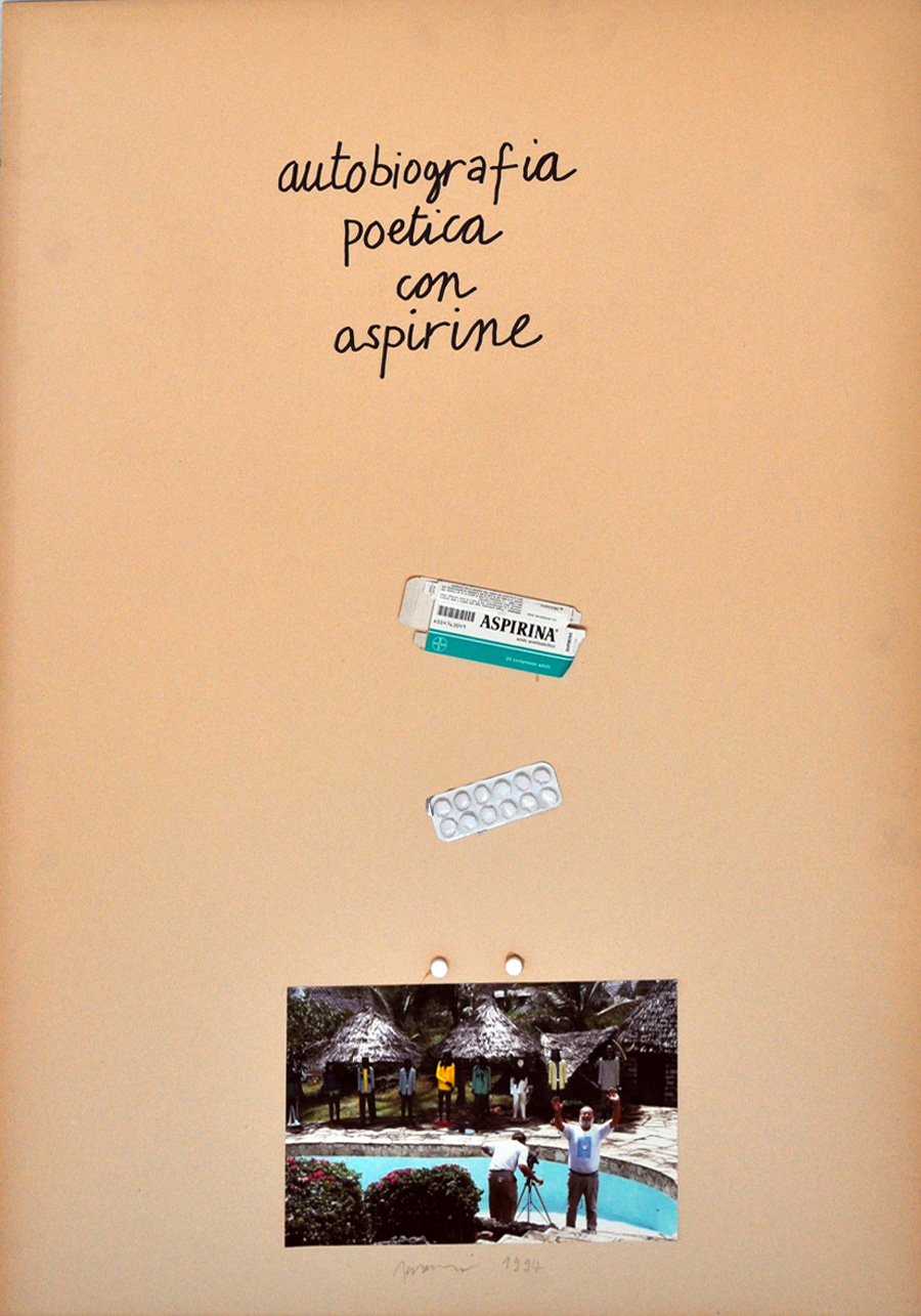 SARENCO Autobiografia poetica con aspirina, 1994 Collage su cartone cm. 103x72 Firma e data in basso al centro