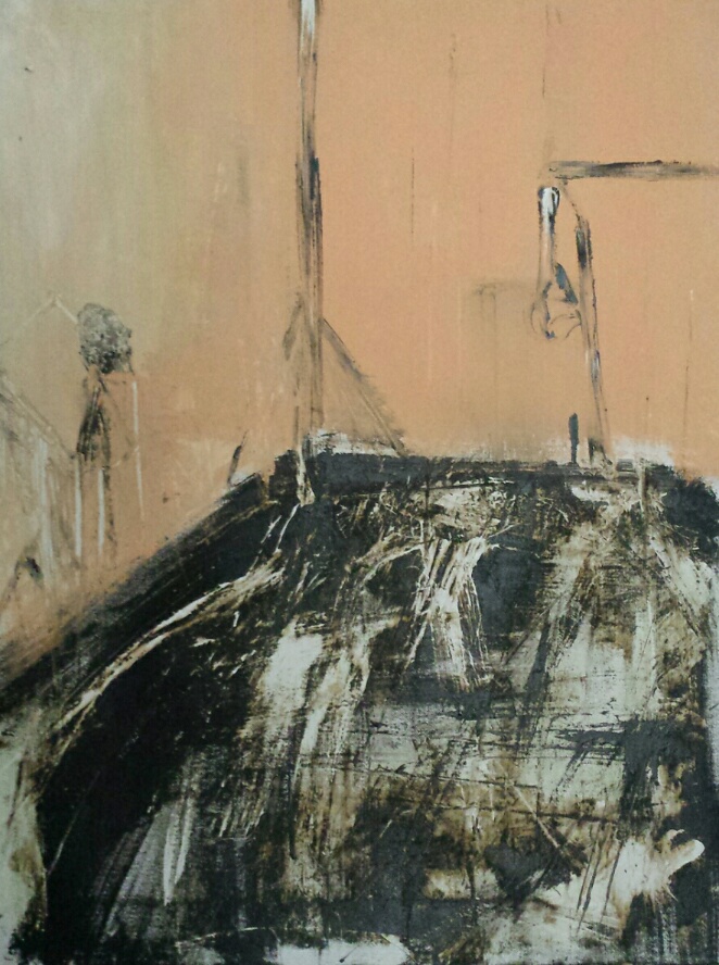 Lorenzo Fabietti Milano 1986 Scenario muto sene 2014 Catrame, olio e acrilico su tela 80x60