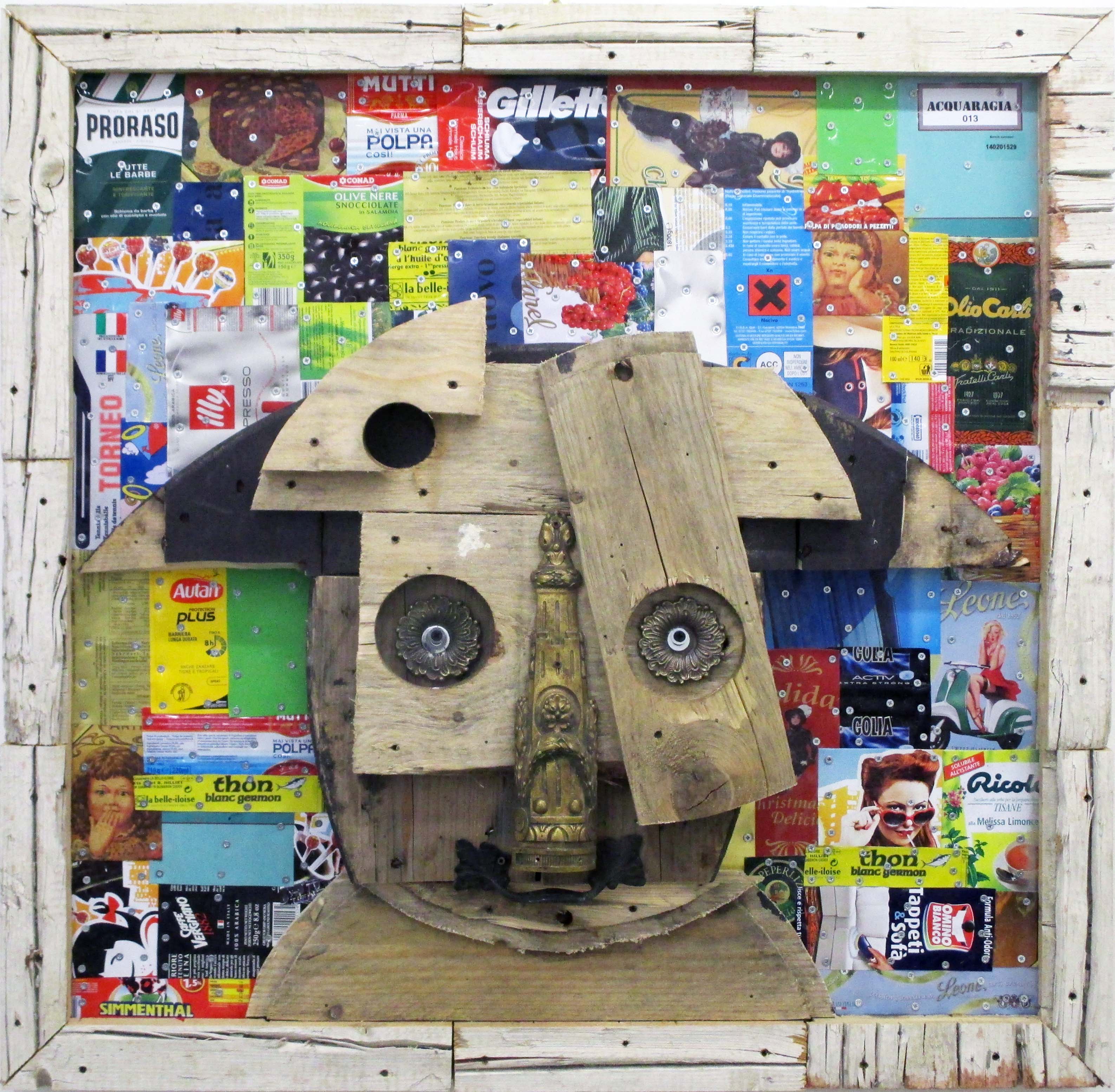Lele De Bonis Torino 1980 Maresciallo di Catanzaro 2015 assemblaggio su tavola 80x80