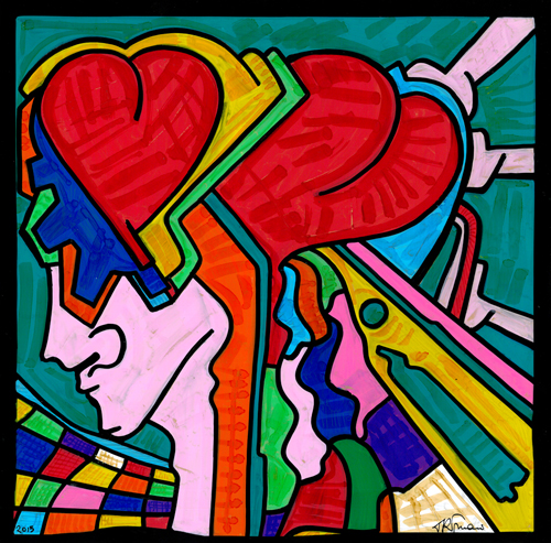 GIOVANNI TRIMANI ROMA 1974 AMORI 2015 ACRILICO SU LINEOLEUM 35x35x3 Certificato di autenticità