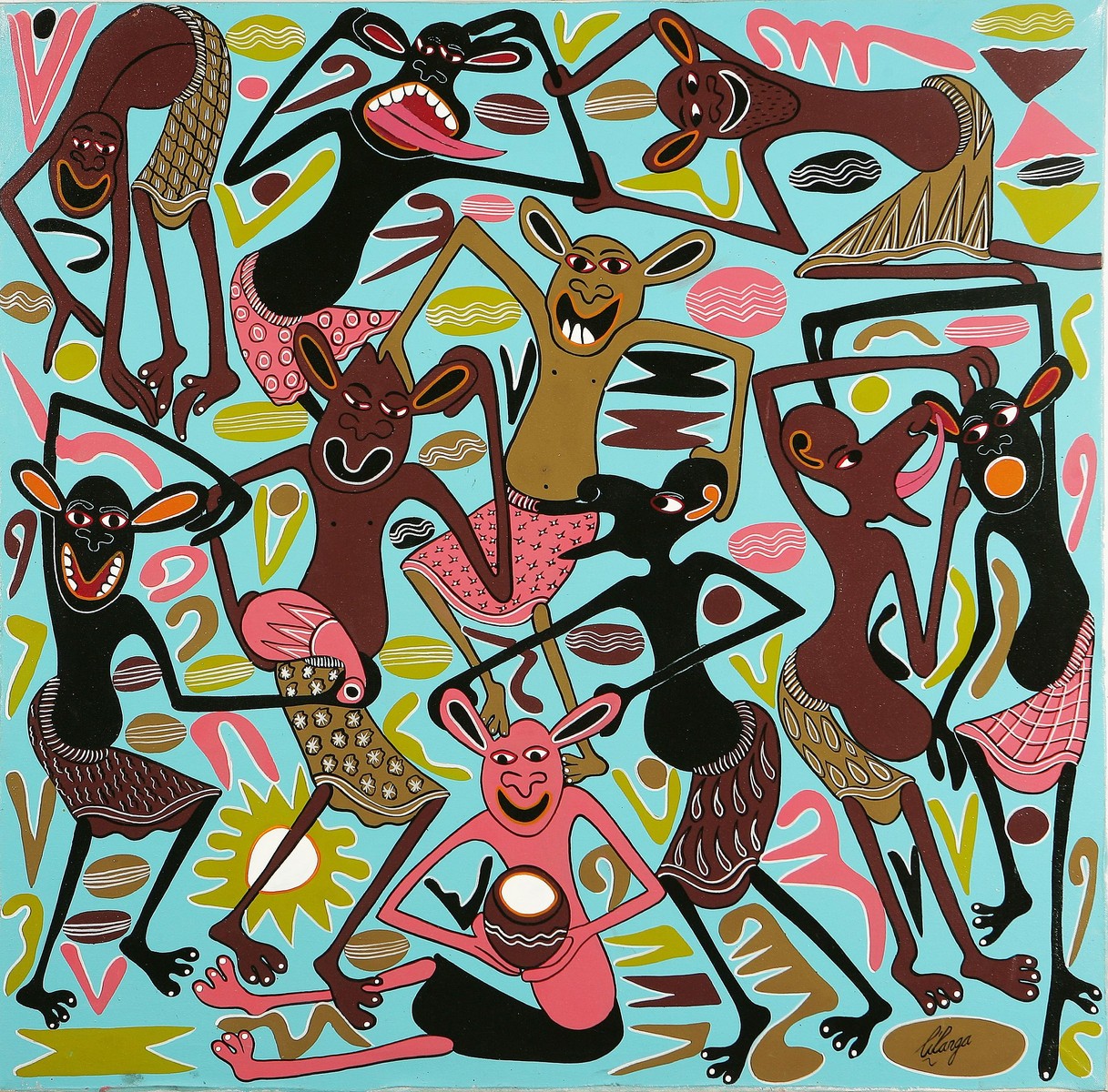 LILANGA GEORGE (1940 - 2005) Firma in basso a destra. Autentica su fotografia a cura della Galleria Rosenfeld. Olio su tela Cm 99,5x99,5