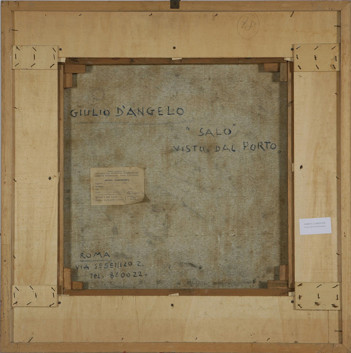 D'ANGELO GIULIO (n. 1908) Firma e anno in basso a destra. Al retro firma, titolo e cartiglio del concorso nazionale di pittura estemporanea di Gardone Riviera - Salò. Premio G. d' Annunzio. Quarta edizione, 1965. Olio su tela Cm 70x70 , ANNO: 1965