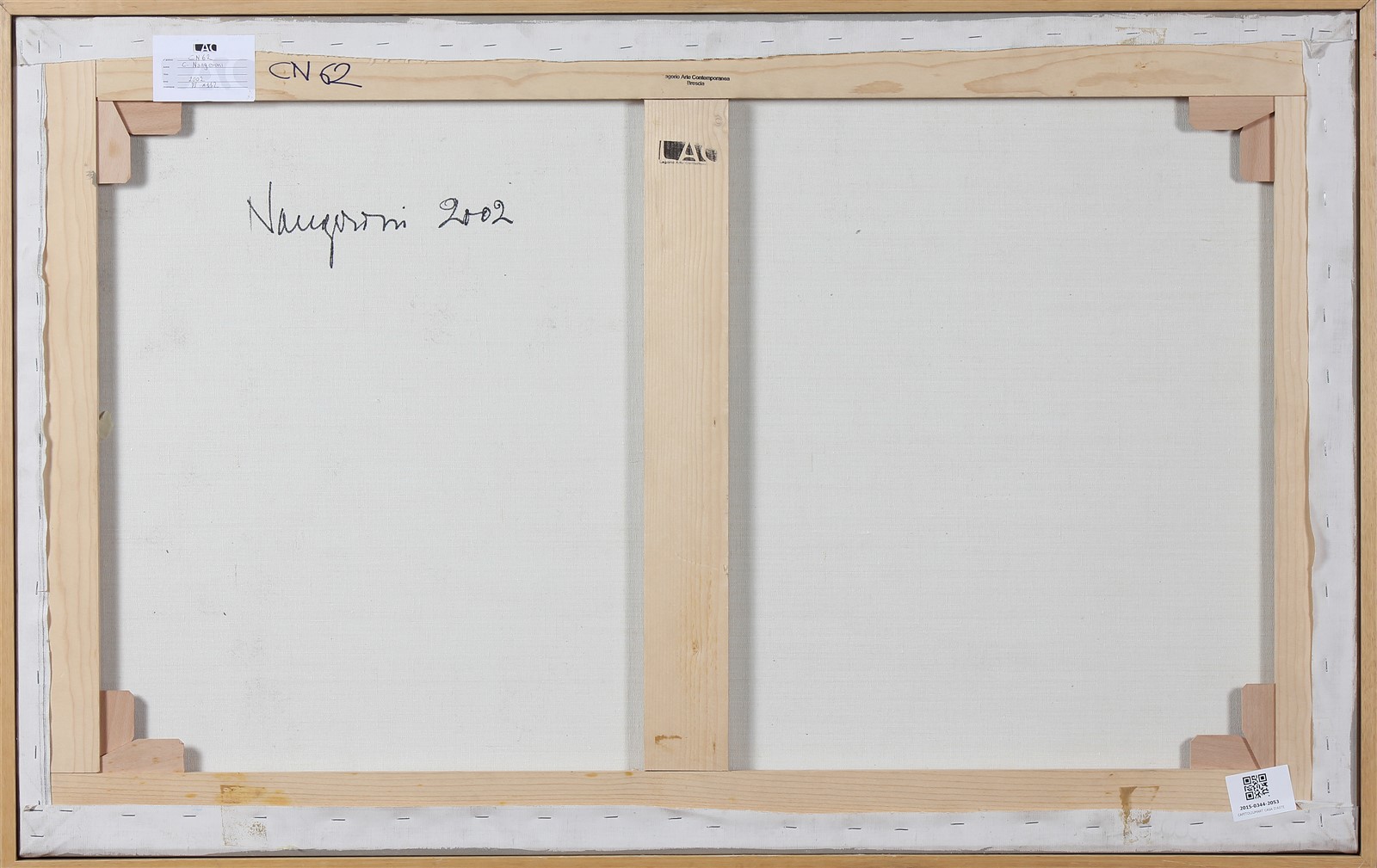 NANGERONI CARLO (n. 1922) Senza titolo. 2002. Acrilico su tela. Cm 112,00 x 71,00. Al retro firma, anno e cartiglio descrittivo a cura di Lagorio Arte contemporanea, Brescia. Opera archiviata presso l'Archivio Nangeroni, coma da documentazione fotografica allegata all'opera riportante il relativo numero d'inventario.
