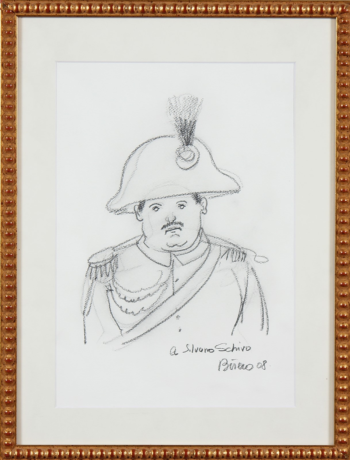 BOTERO FERNANDO (n. 1932) Senza titolo. 2008. Matita su carta. Cm 24,00 x 35,00. Firma e anno e dedica in basso a destra. Autentica dell' artista su fotografia. Cornice presente