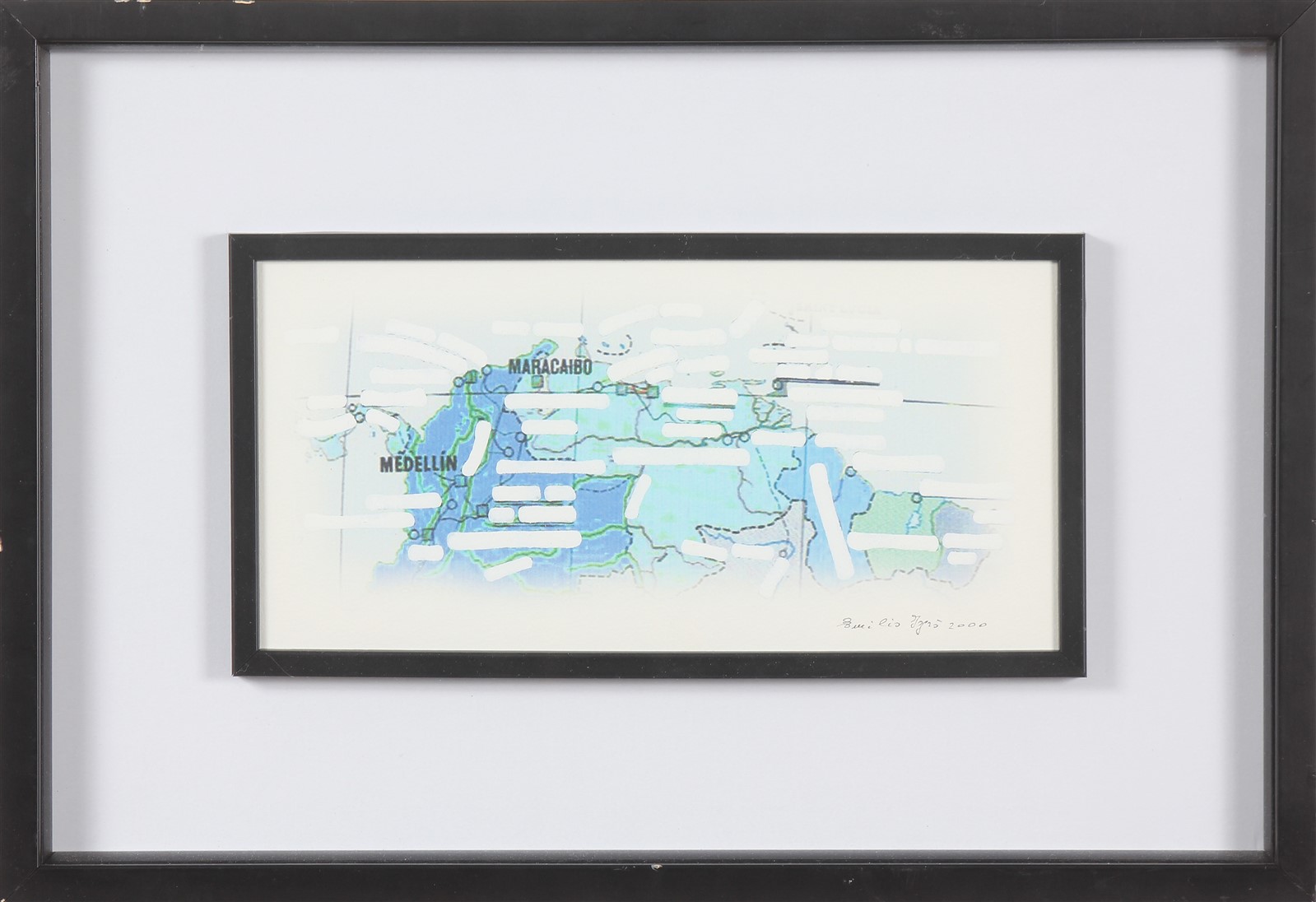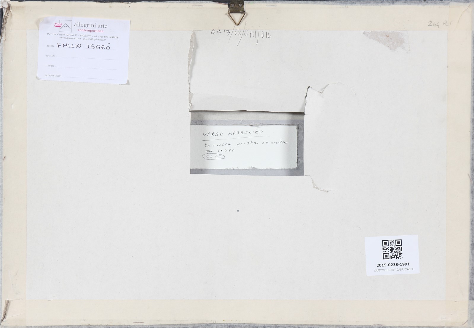 ISGRO' EMILIO (n. 1937) Verso Maracaibo. 2000. Tecnica mista su carta. Cm 30,00 x 15,00. Firma e anno in basso a destra. Al retro titolo. Autentica dell'artista su fotografia. Cornice presente