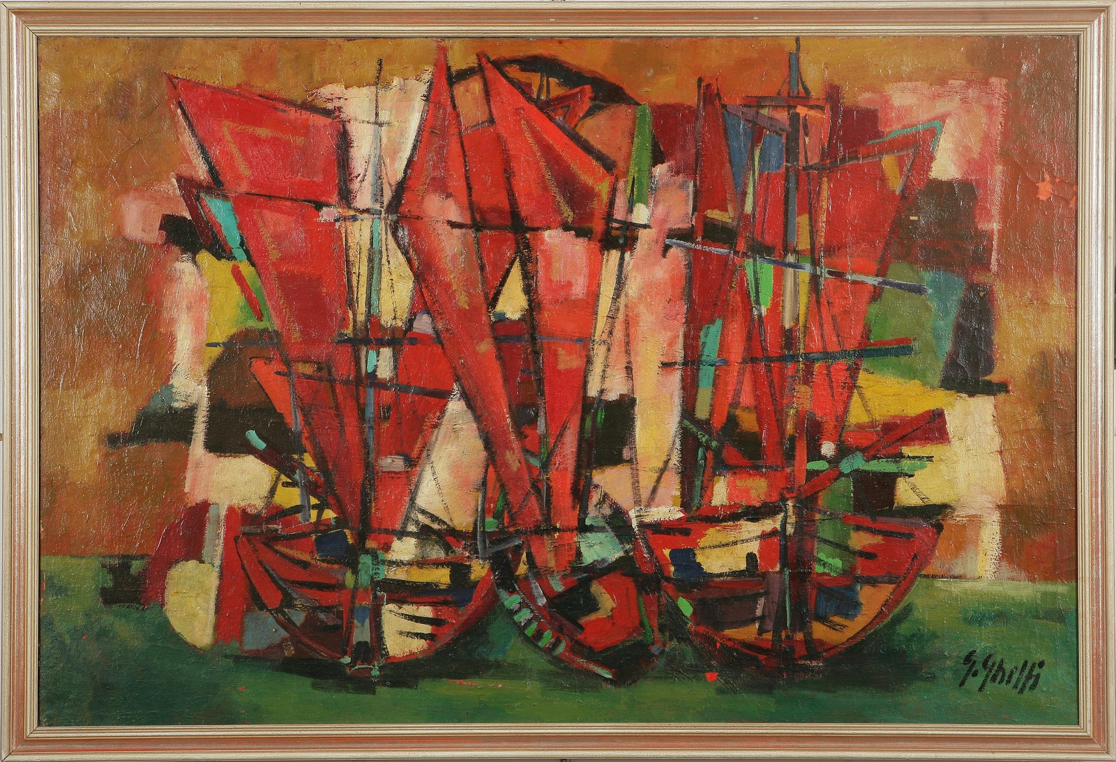 GHELFI GIANNI (1919 - 1956) Firma in basso a destra. Olio su tela Cm 80x120
