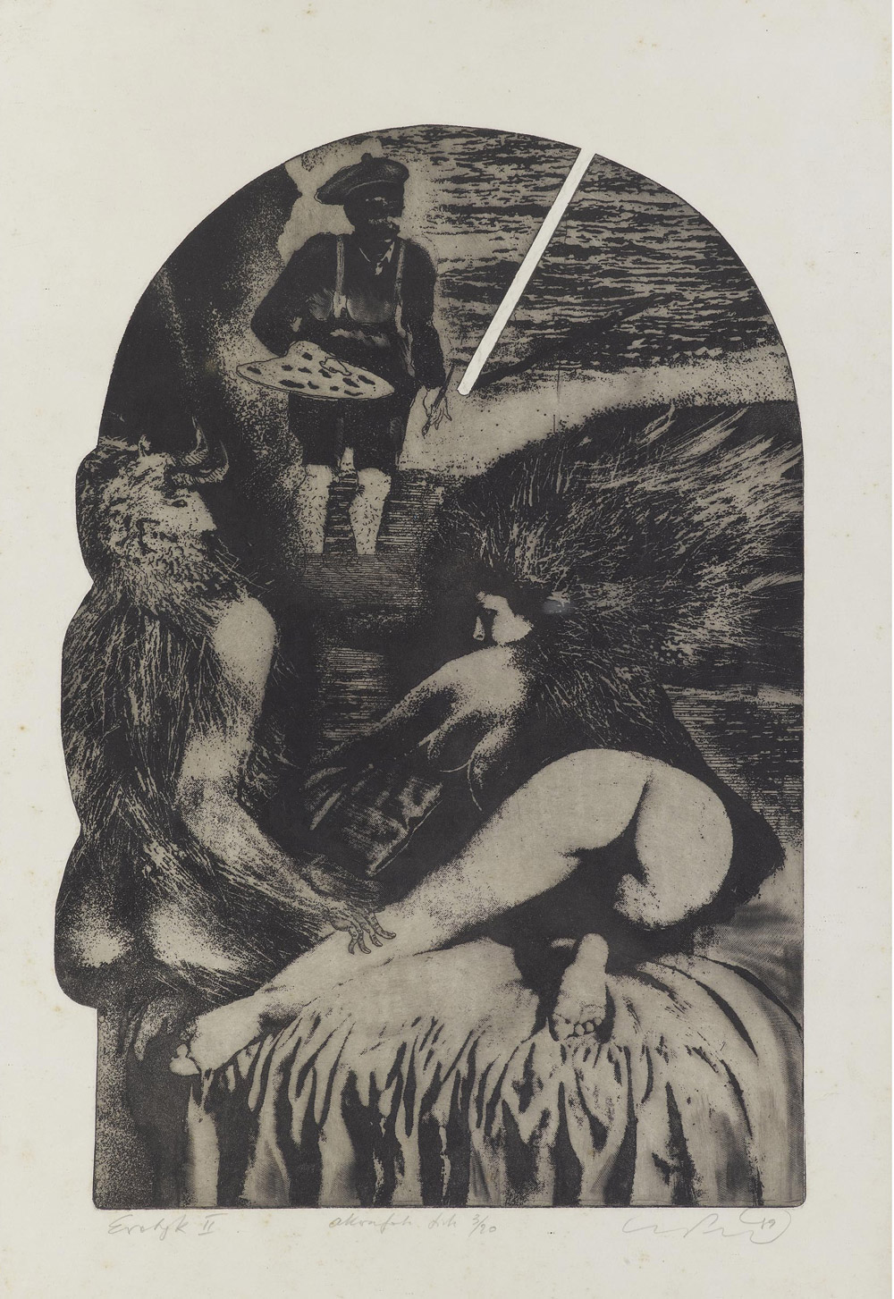 Mirosław Piotrowski (1942-2002) Autoritratto e fauno Acquaforte 3/20 Firmato 50x35 cm