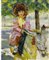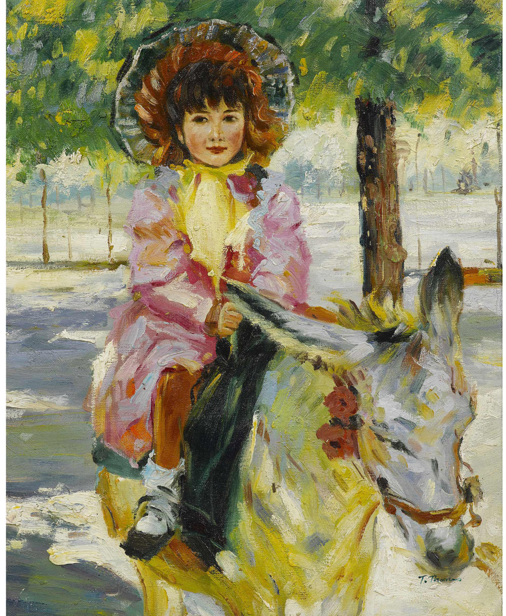 T. Thomas (XIX Secolo) Passeggiata sul'asino Olio su tela Firmato Misura 50x40 cm