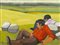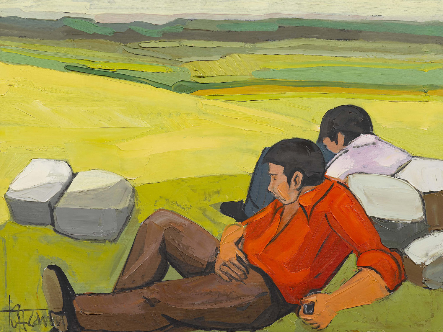 Firma illeggibile (XX secolo) Ragazzi sdraiati Olio su tela Firmato Misura 60x80 cm