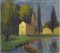 Firma illeggibile (XX secolo) Paesaggio barca con chiesa Olio su tela Firmato Misure 50x55 cm