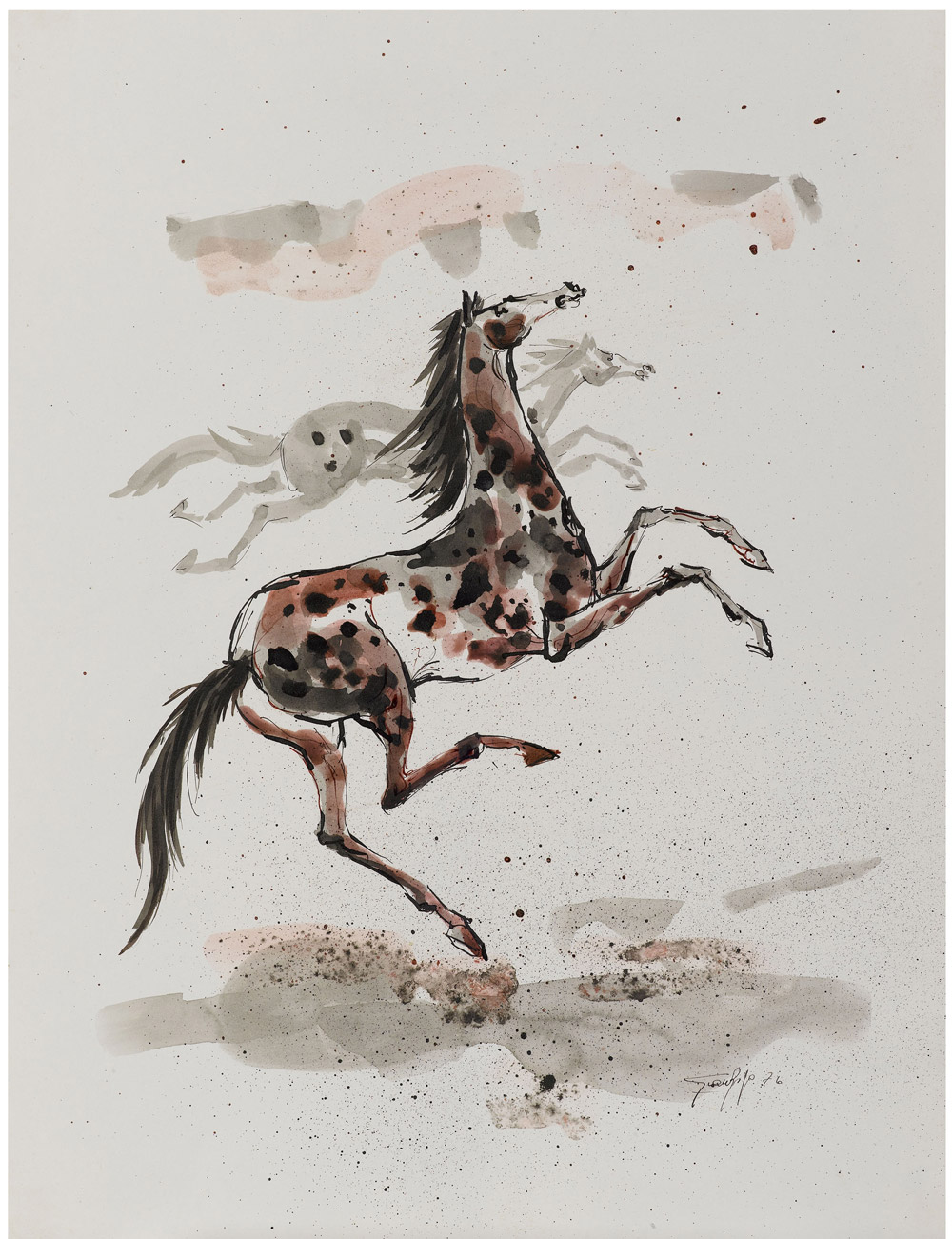 Gianrigo (Venezia 1922) Cavalli Tecnica mista su carta Senza cornice Misure 38.3x29.2 cm