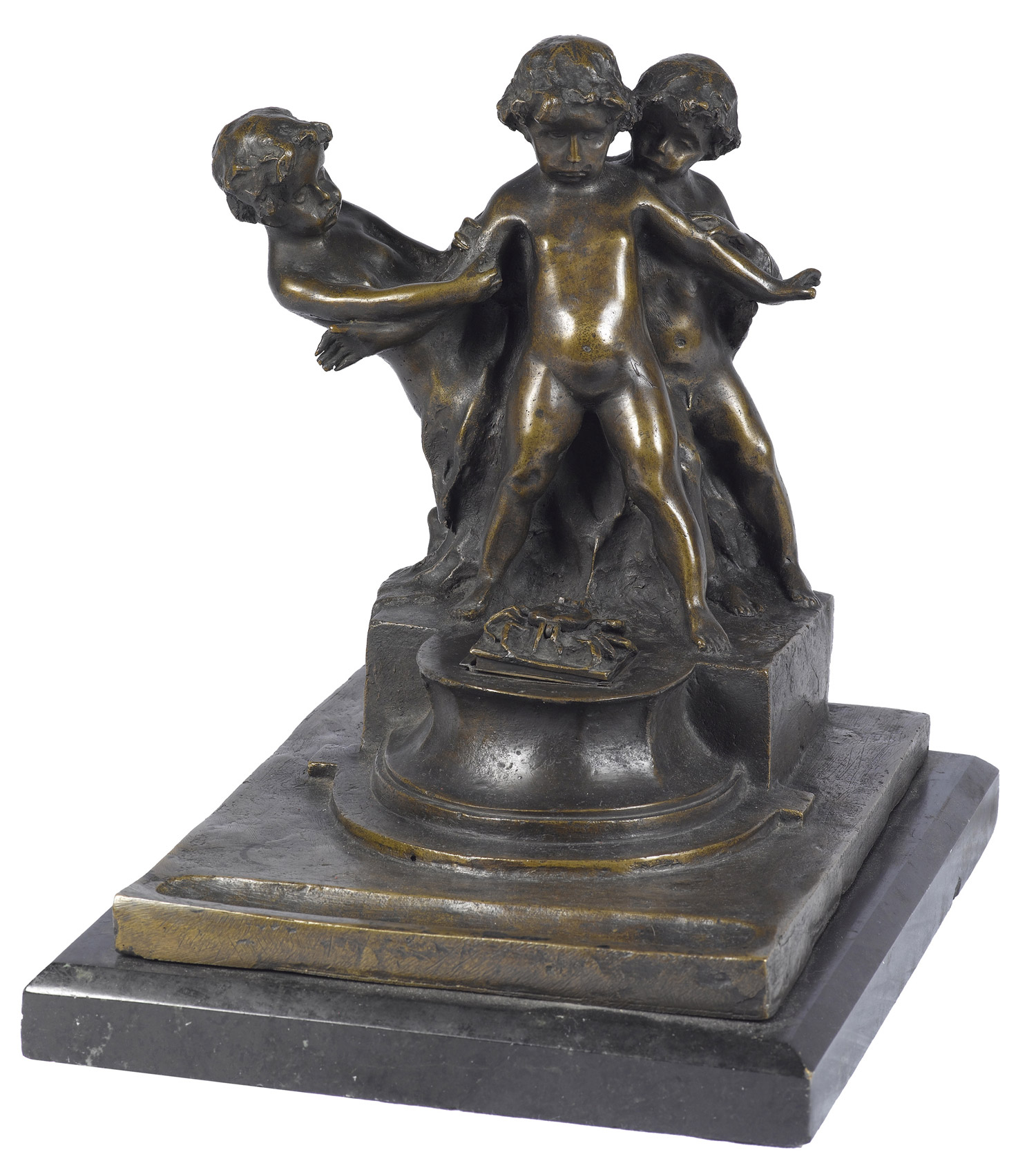 Elia Sala (Milano 1864-1920) Tre bambi davanti ad un granchio Bronzo Firmato Misure 32x32x24 cm