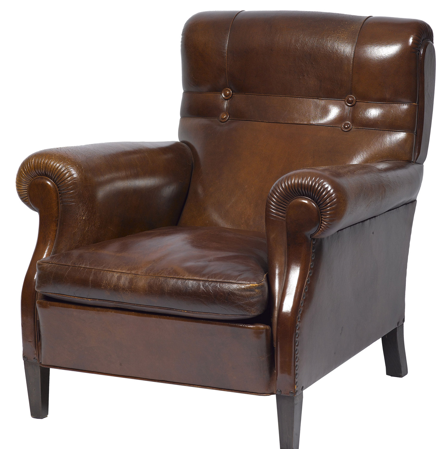 Federico Munari (XX secolo) Poltrona in pelle marchiata ed etichettata Misura...