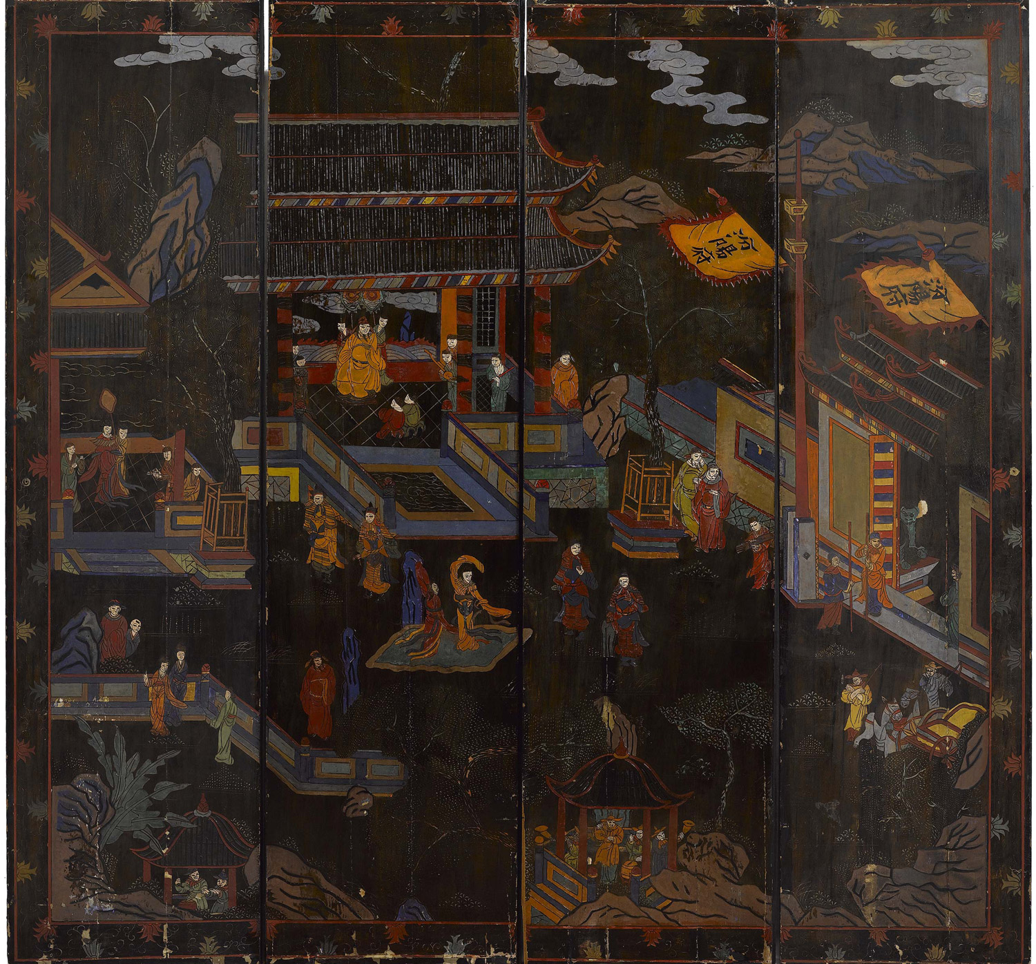 Scuola orientale (XIX-XX secolo) Paravento Dipinto da entrambi i lati Misure 186x192 cm