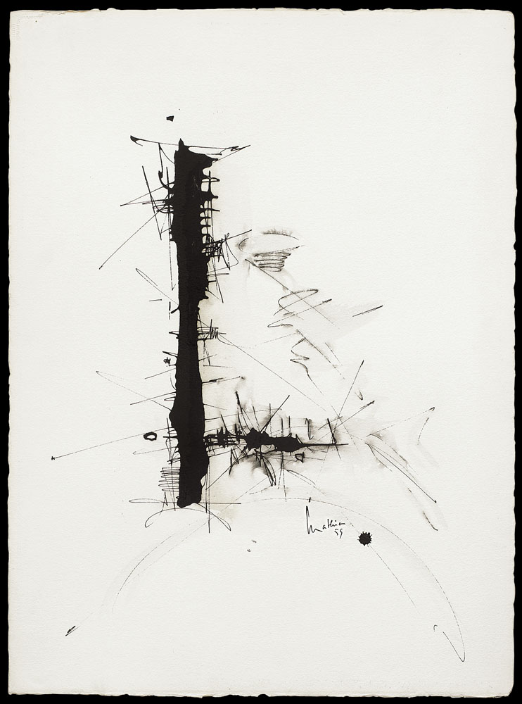inchiostro di china e acquerello su carta Arches cm. 77x57, firma e anno in basso al centro, opera registrata presso l'Archivio Georges Mathieu come da certificato d'autenticità a cura del Comitè Georges Mathieu allegato.
