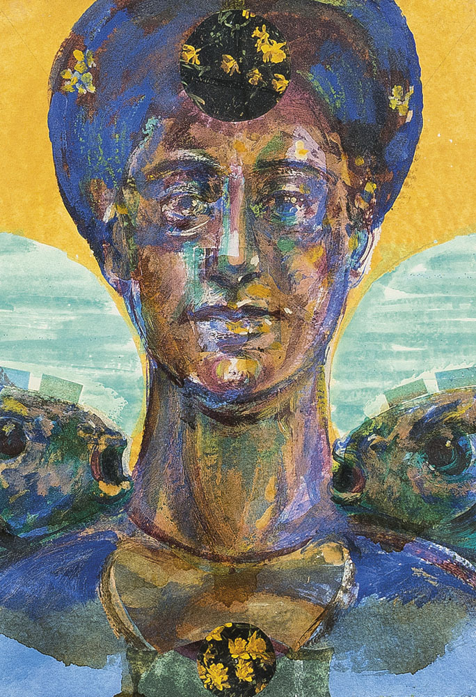 tecnica mista e collage su carta intelata cm. 35x25, firma, titolo e anno al retro.