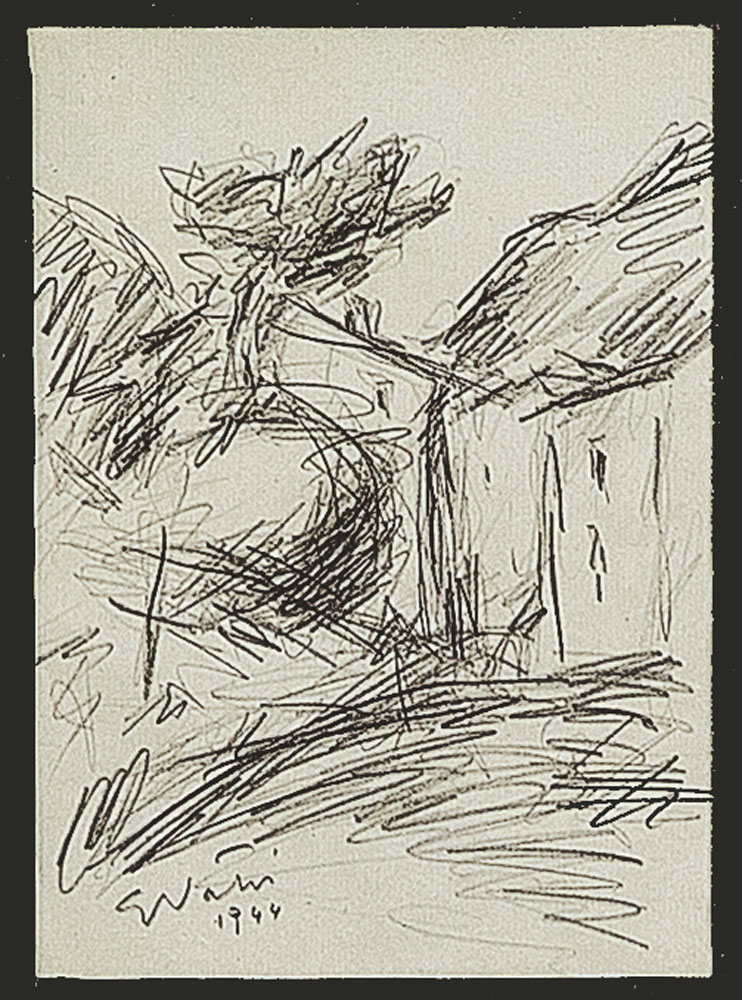 matita su carta cm. 21x15, firma e anno in basso a sinistra, opera registrata presso l'Archivio Gualtiero Nativi come da dichiarazione a cura del figlio Berto su foto.
