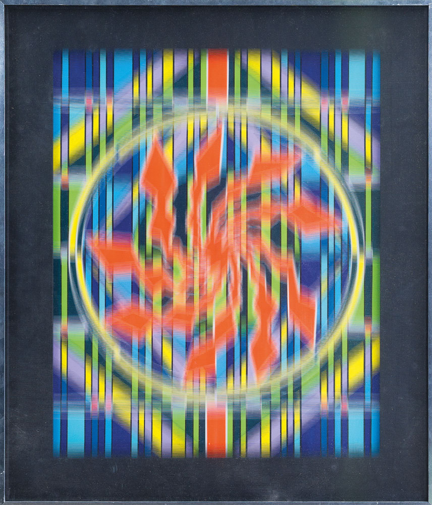 tecnica mista su cartoncino con copertura in plexiglass zigrinato a linee orizzontali cm. 60x50; opera non firmata, anno, etichetta e timbro dell'artista al retro.