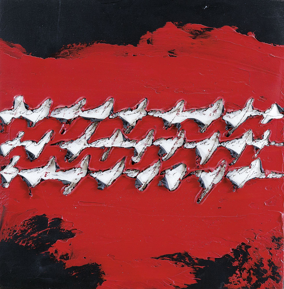 acrilici su tela cm. 30x30x2,5; firma e anno al retro, dichiarazione d'autenticità dell'artista su foto, opera priva di cornice.