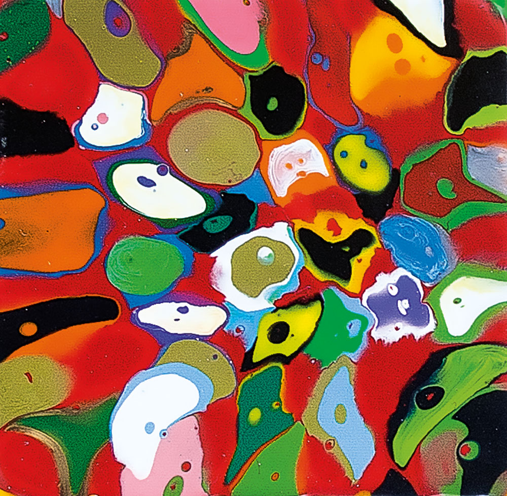 colle termofusibili su tela cm. 20x20, firma, titolo e anno al retro, dichiarazione d'autenticità a cura di Paola Barnabei su foto.