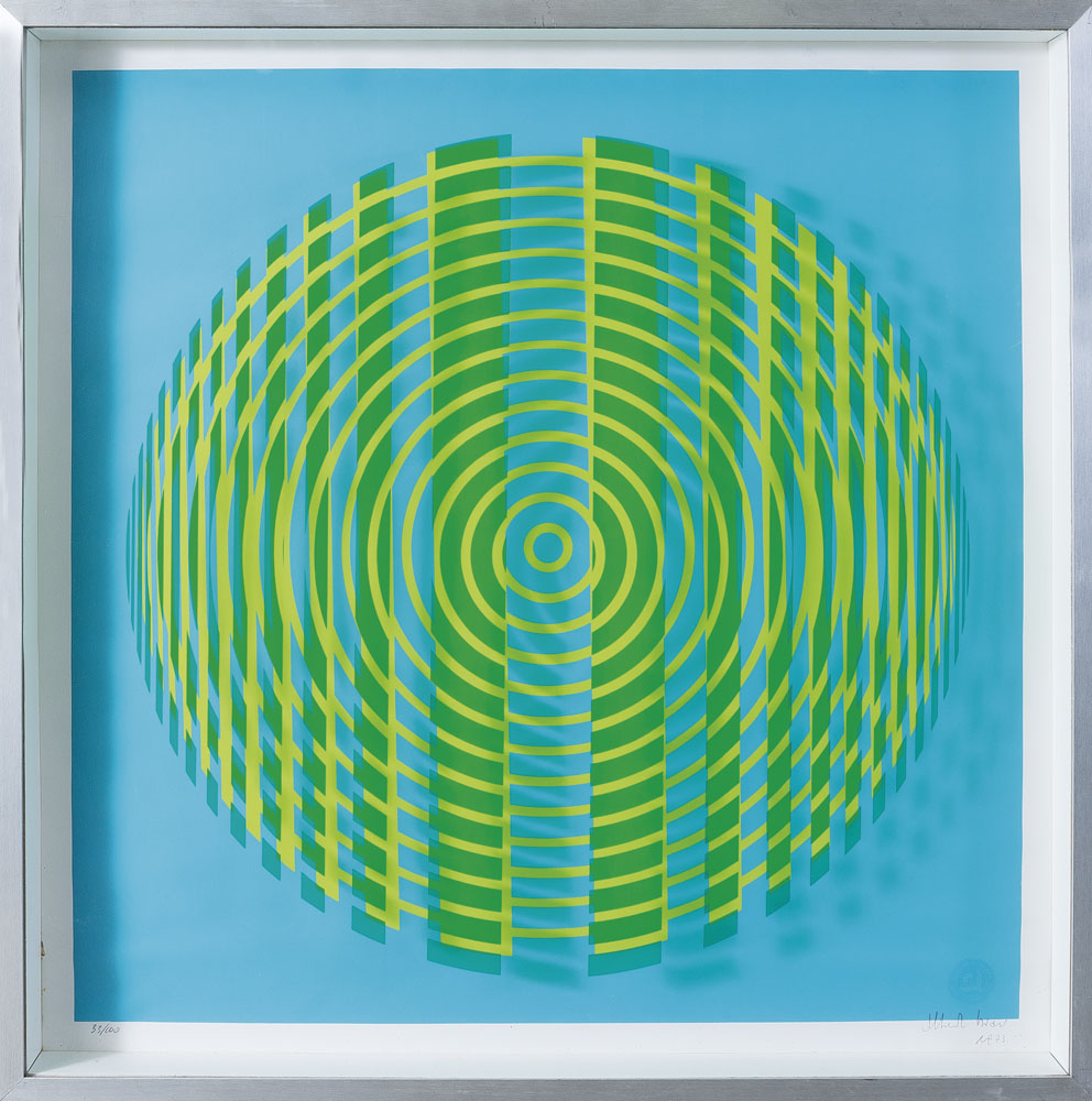 serigrafia su carta e su plexiglass cm. 70x70, esemplare 33/100, firma e anno in basso a destra.