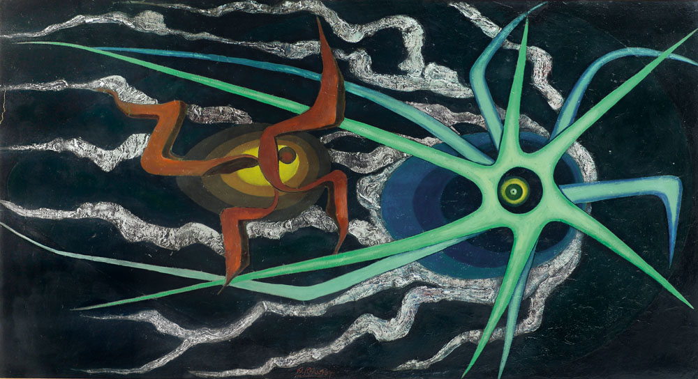 olio su truciolare cm. 118x208, firma in basso al centro.