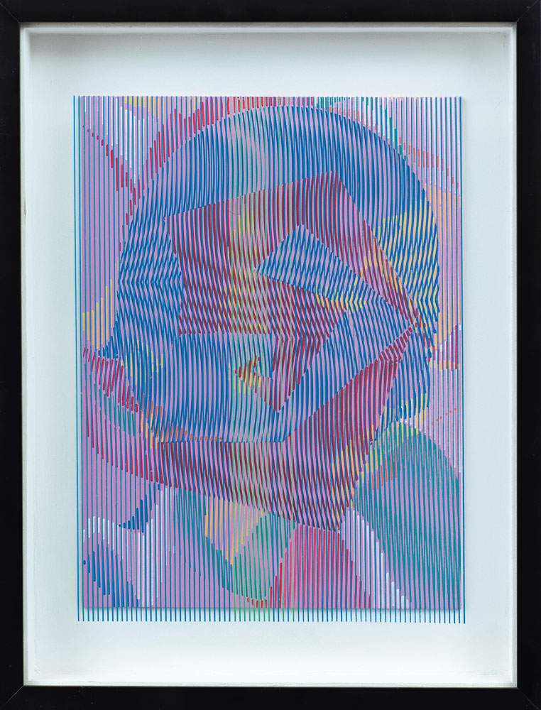 tecnica mista su tavola con vetro serigrafato a linee verticali cm. 40x30, firma dell'artista e timbro della Galleria Artestudio 96 (Matera) al retro, dichiarazione d'autenticità e archivio dell'artista n° OC.402 su foto, prototipo dell'opera pubblicato su "Alberto Biasi, rilievi ottico-dinamici", Edizioni Galleria Dep Art, pagina 223 al n° 513 con scheda: "Dinamic" 30x20 cm. CO 20.