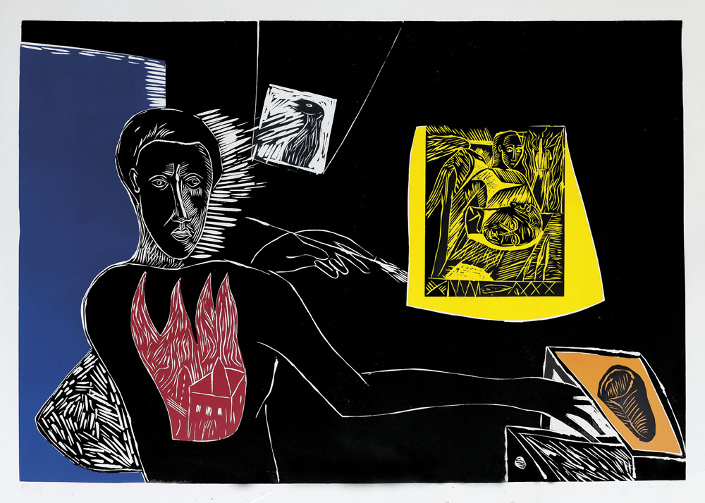 linoleumgrafia a 6 colori su carta cm. 97x135 (lastra cm. 81x121), esemplare PA 12/12, firma e anno in basso a destra.