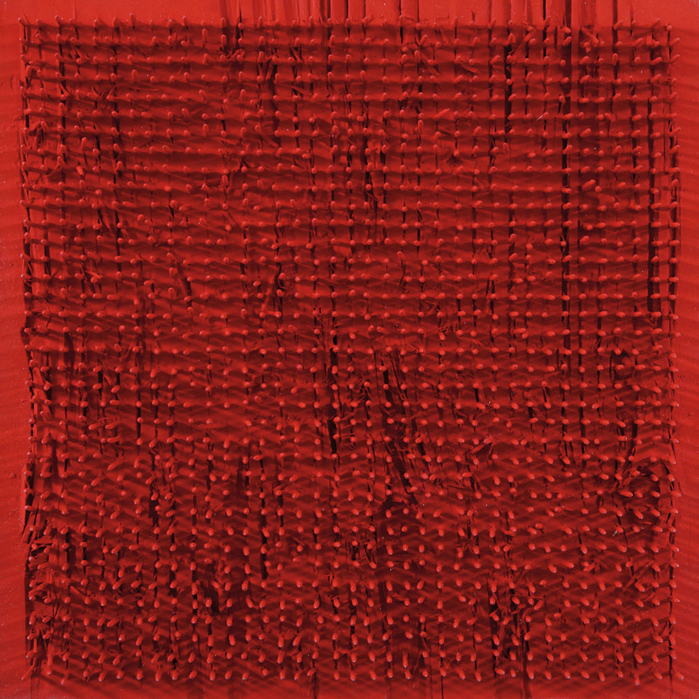 acrilici e chiodi su tavola cm. 40x40, firma e anno al retro, dichiarazione d'autenticità dell'artista su foto, opera registrata presso l'Archivio Opere Bernard Aubertin (BS) come da dichiarazione su certificato allegato, entro teca in legno e plexiglass.