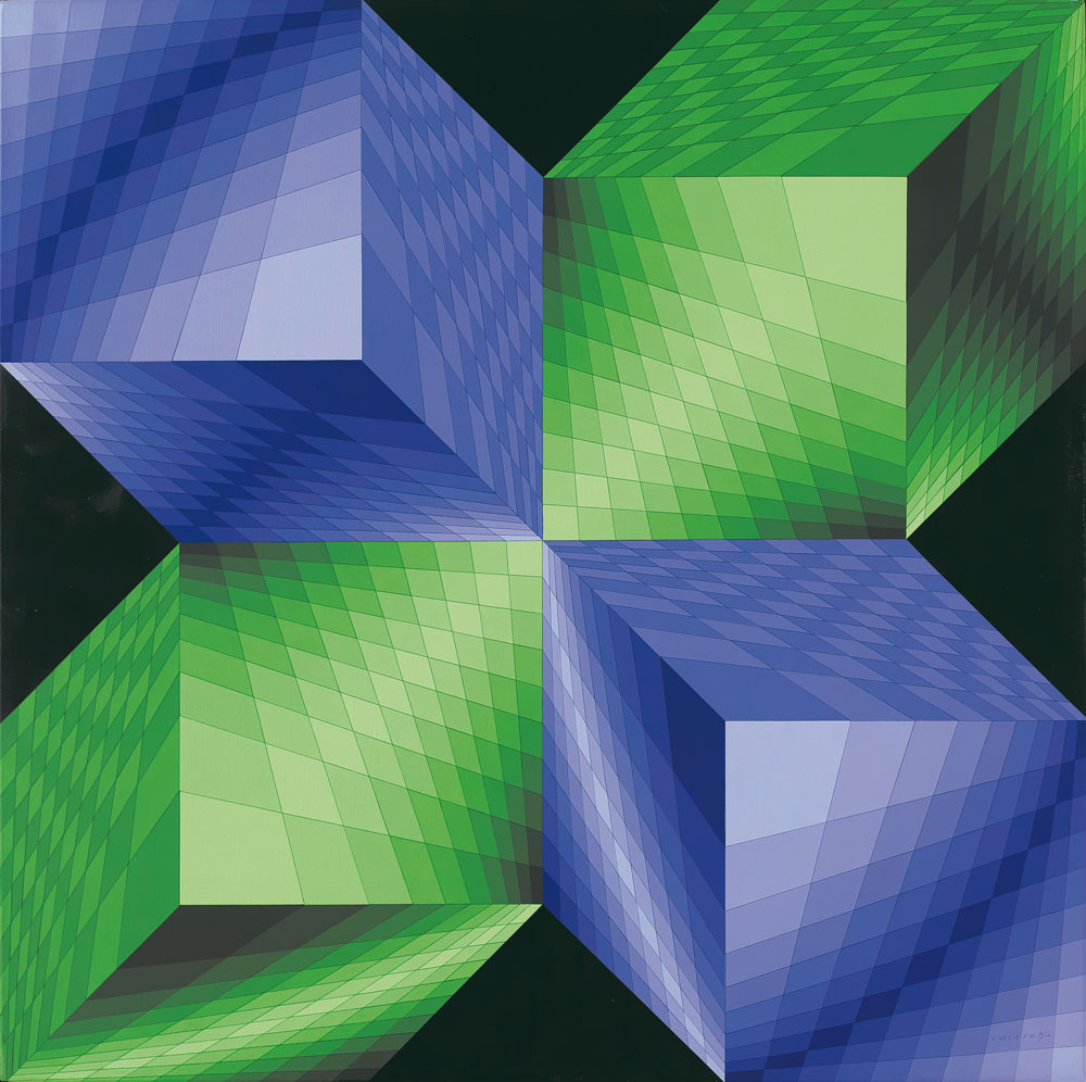 VASARELY VICTOR Pecs 1906 - Parigi 15/03/1997Kat-Kub, 1973-75acrilici su tela...