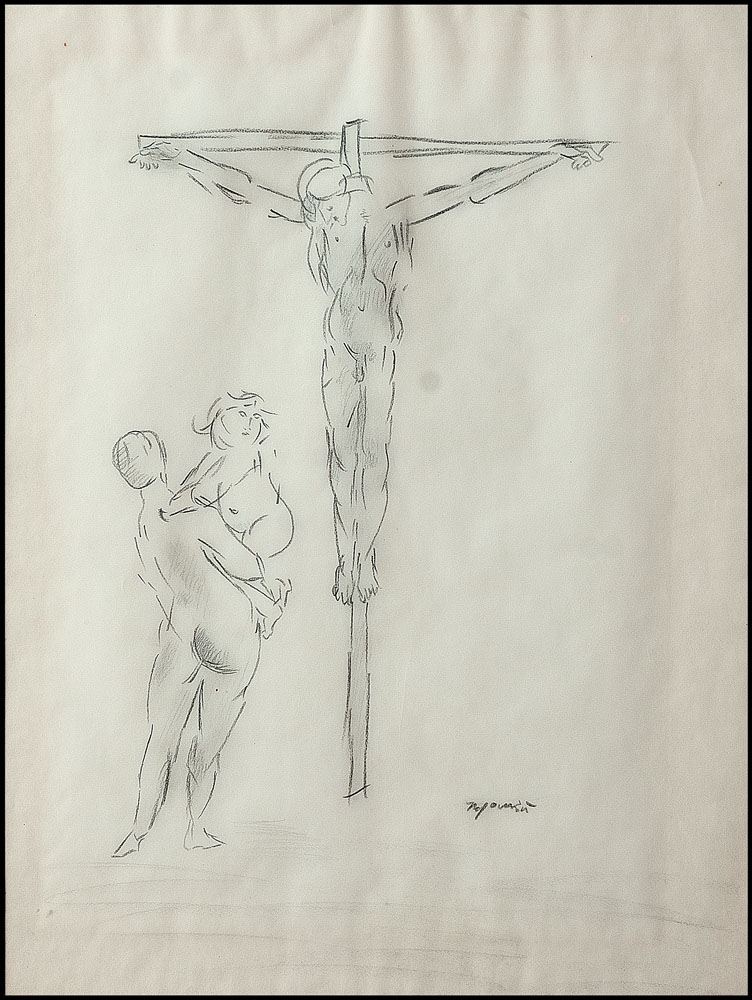 MANZU' GIACOMO Bergamo 22/12/1908 - Roma 17/01/1991Crocifisso e donna con...