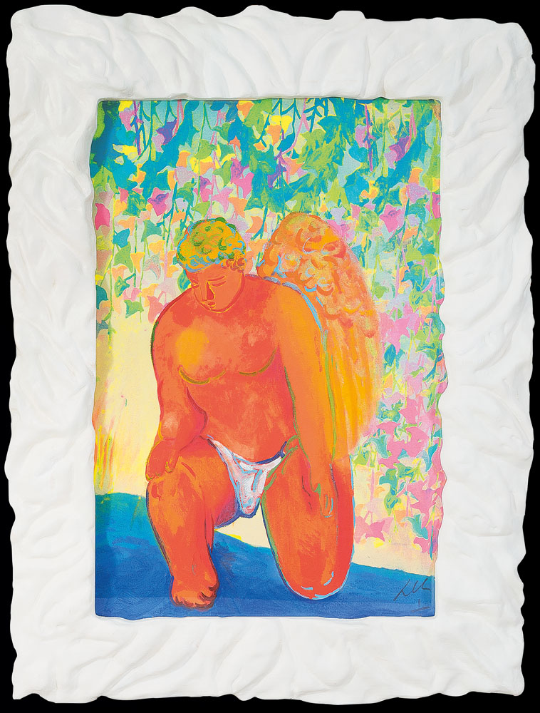 monotipo su cartoncino cm. 98x67 con cornice realizzata dall'artista cm. 128x95, firma in basso a destra, dichiarazione d'autenticità dell'artista su foto.