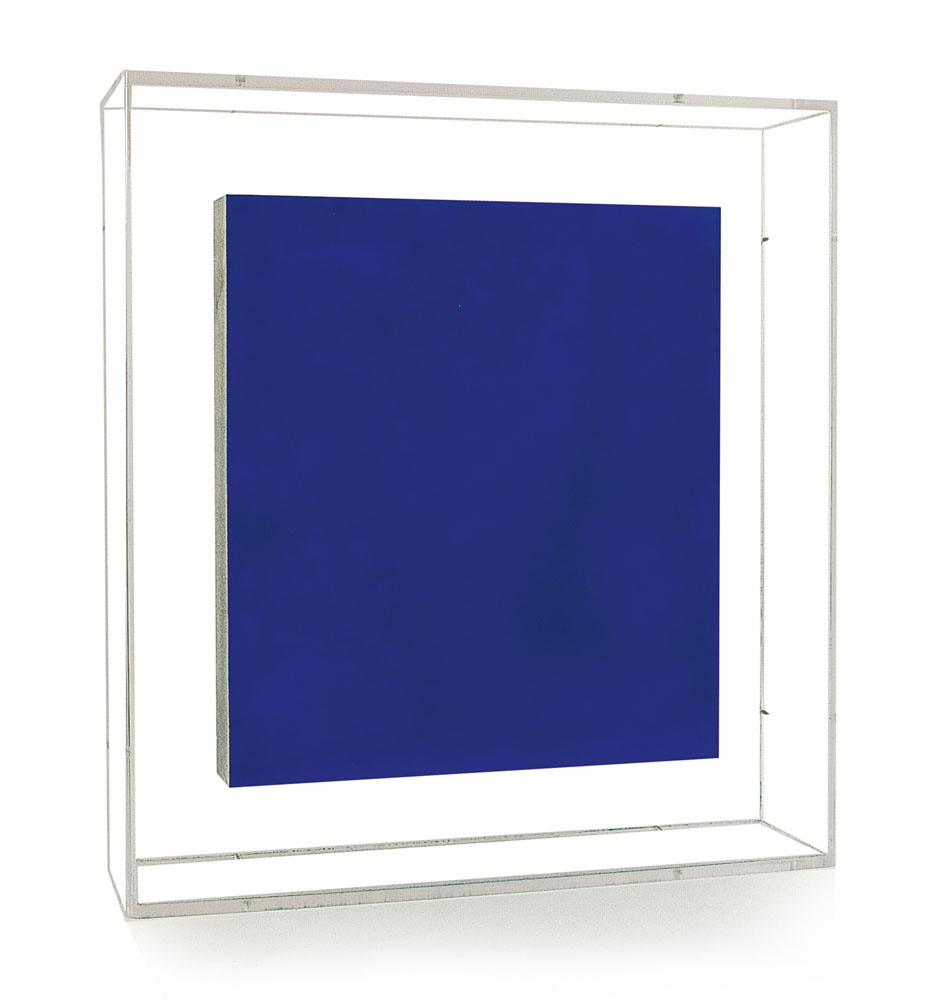 pigmento su pietra serena, colore blu 23070 cm. 30,5x27,4; firma, anno e archivio al retro, dichiarazione d'autenticità dell'artista su foglio A4 allegato, certificato di autenticità della Orler Gallerie d'Arte (Favaro Veneto-VE) allegato, entro teca in plexiglass.